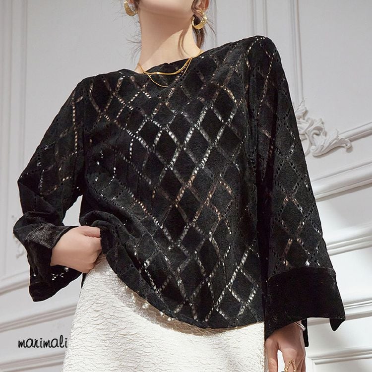 #デザイナーアンクル #ブラックレース #ボートネック #ベルベット #ファッション