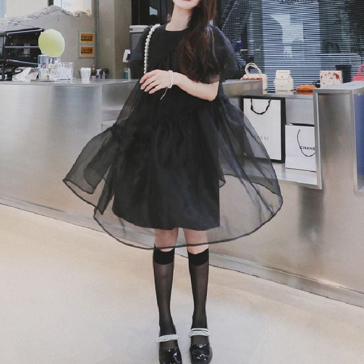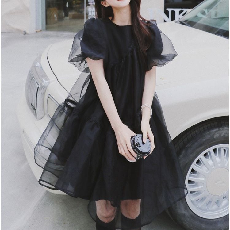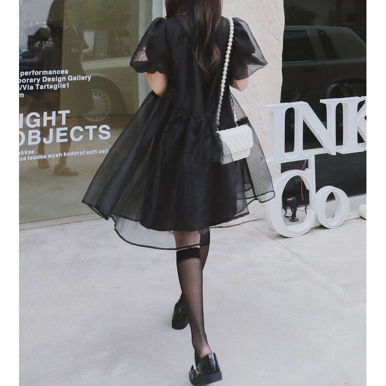 ティアード シアー パフスリーブ ミニワンピース 25113