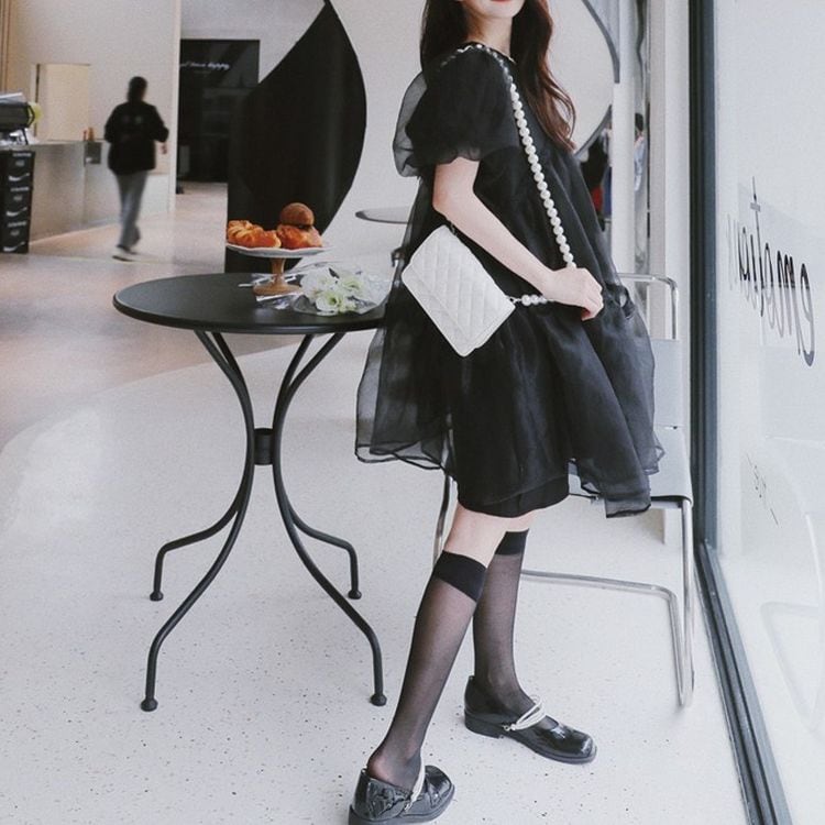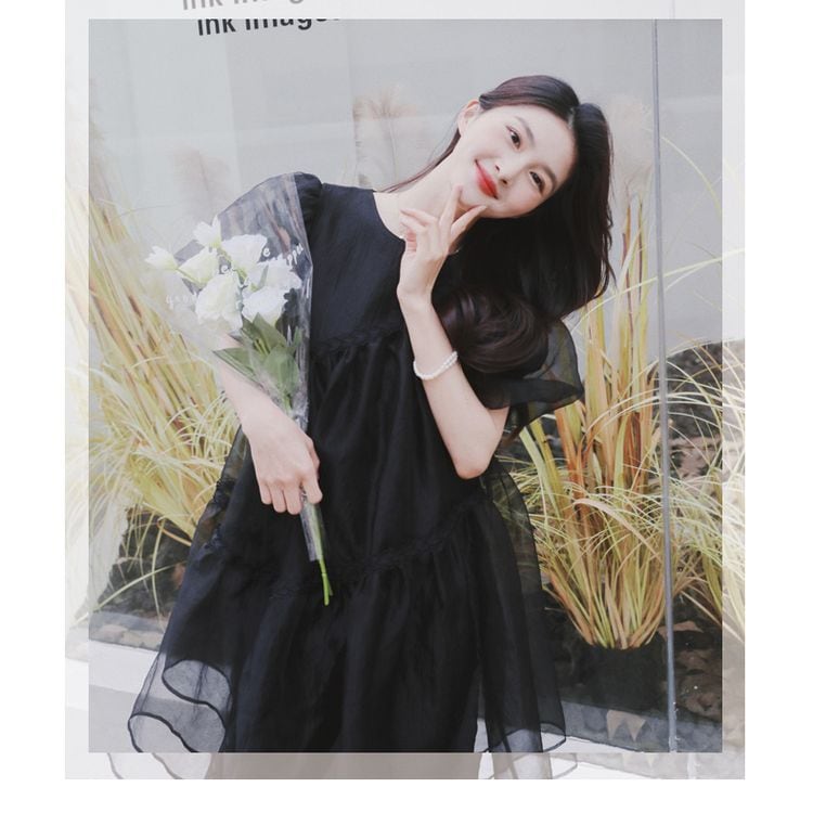 オーガンジー素材の透け感と、上品なシルエットが、大人の女性らしさを引き立てます。
