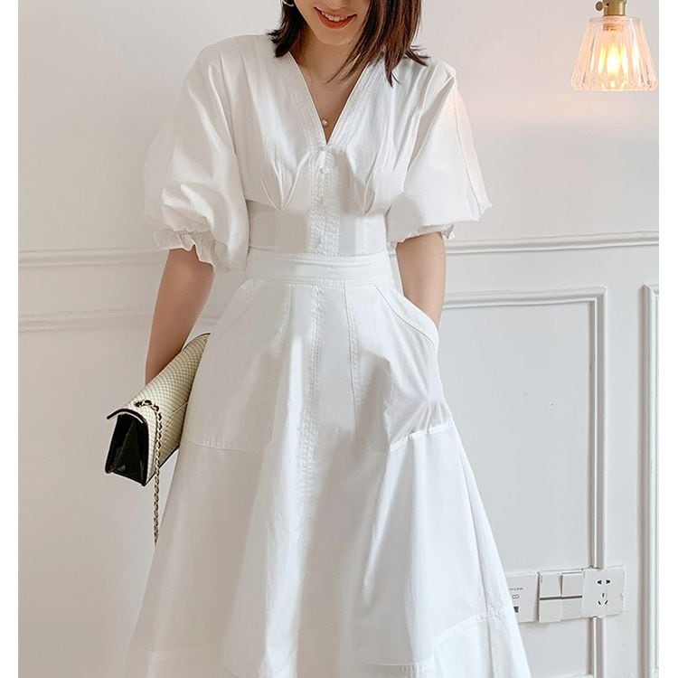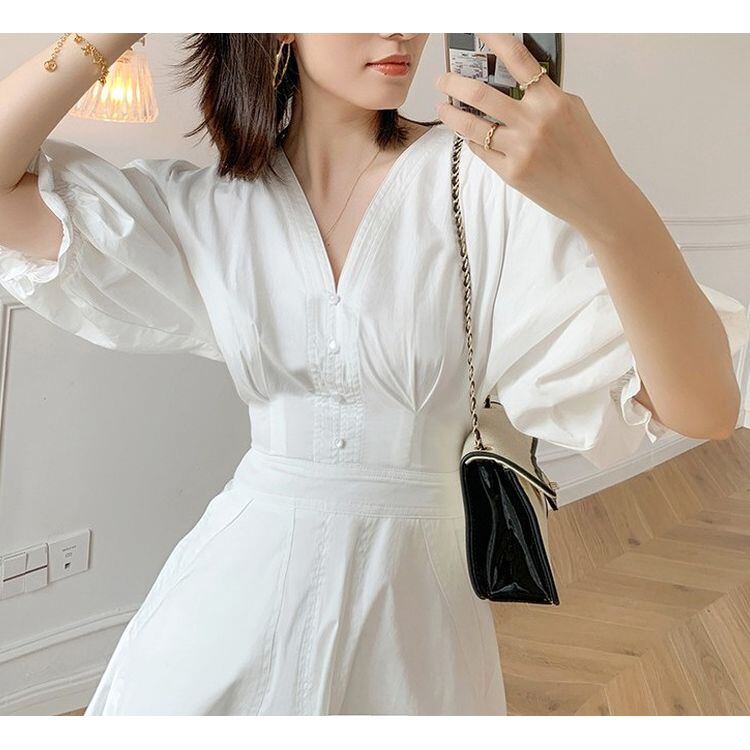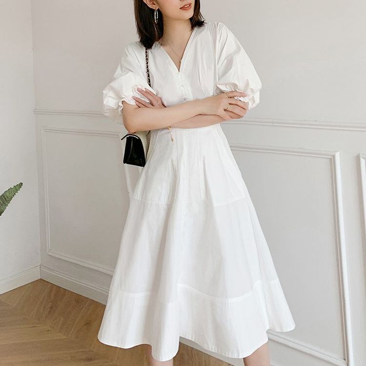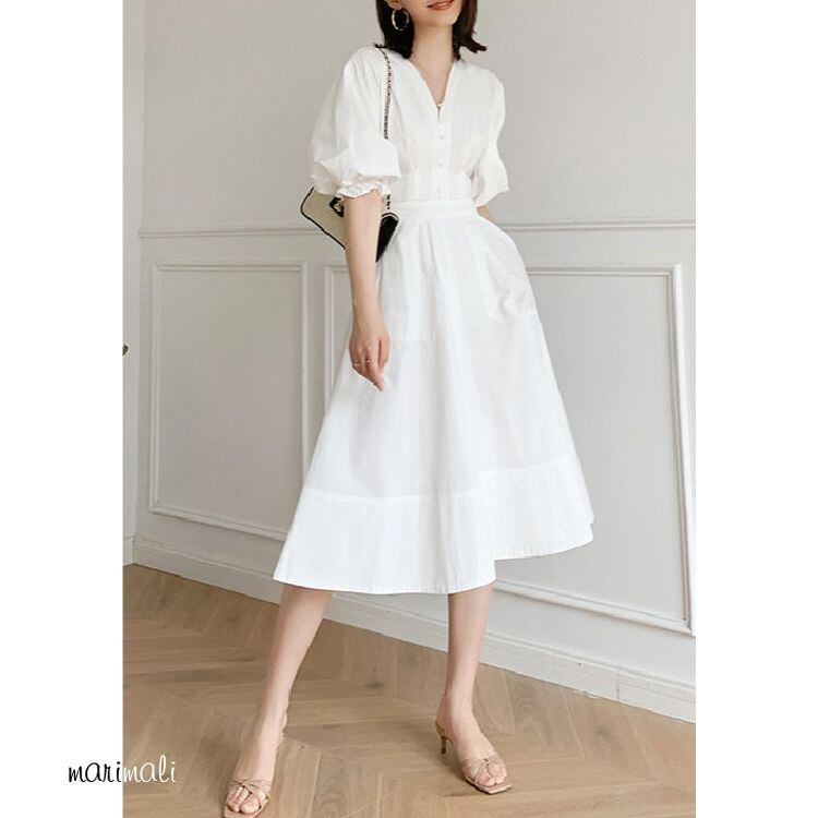 #ホワイトドレス #ファッションモデル #ミディドレス #スリークウォーター #Aラインワンピース