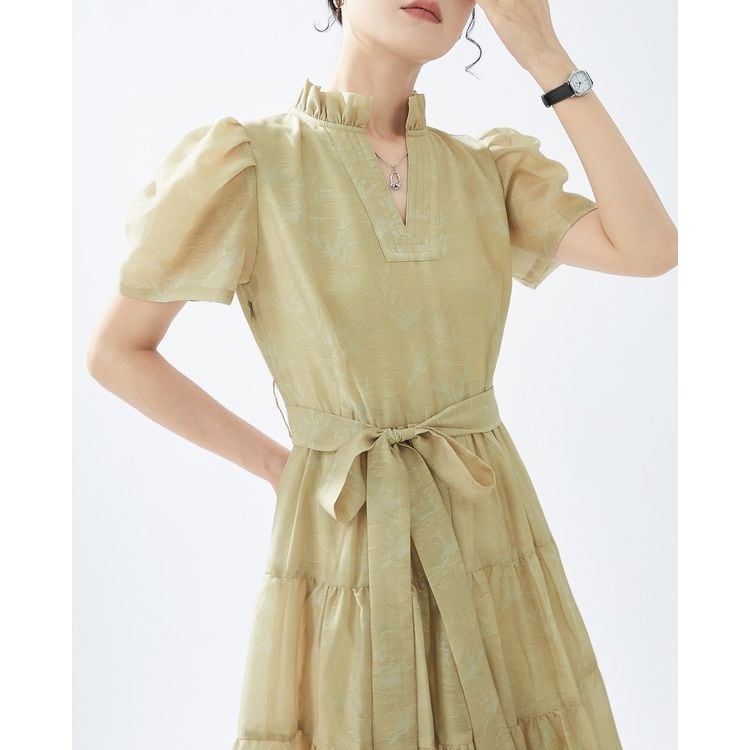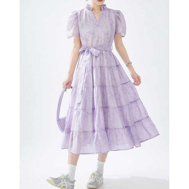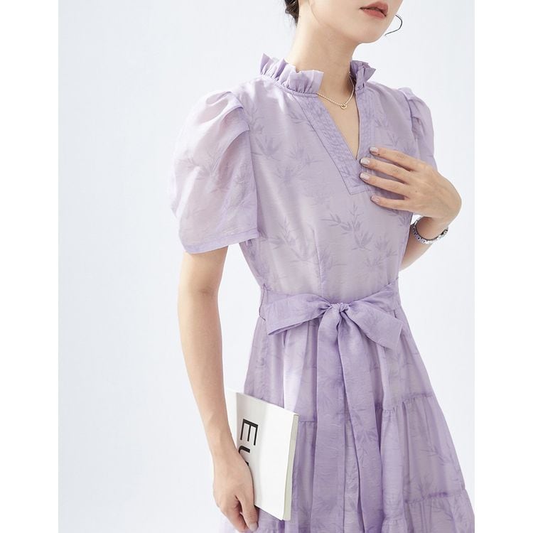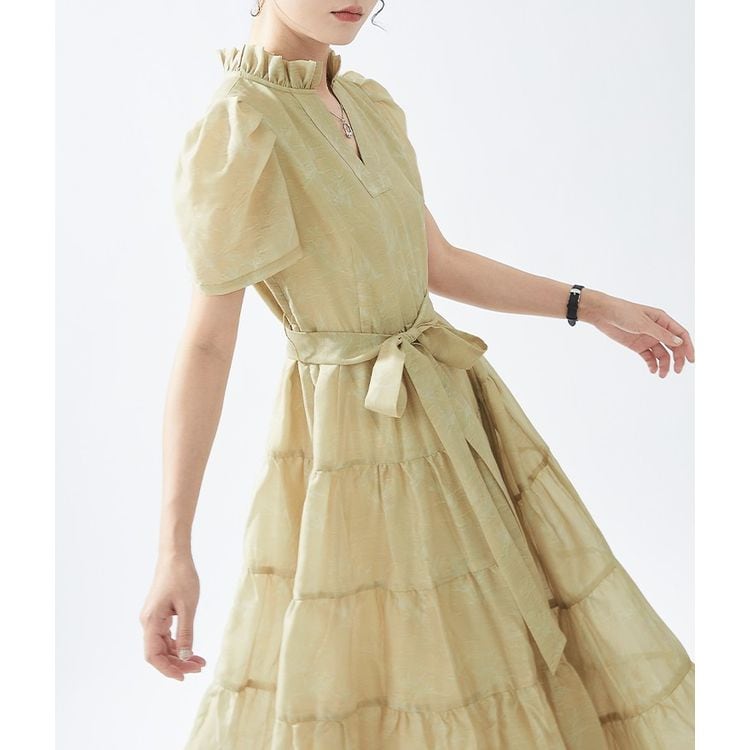 爽やかな印象のカラーと、ティアードデザインが華やかなワンピース。