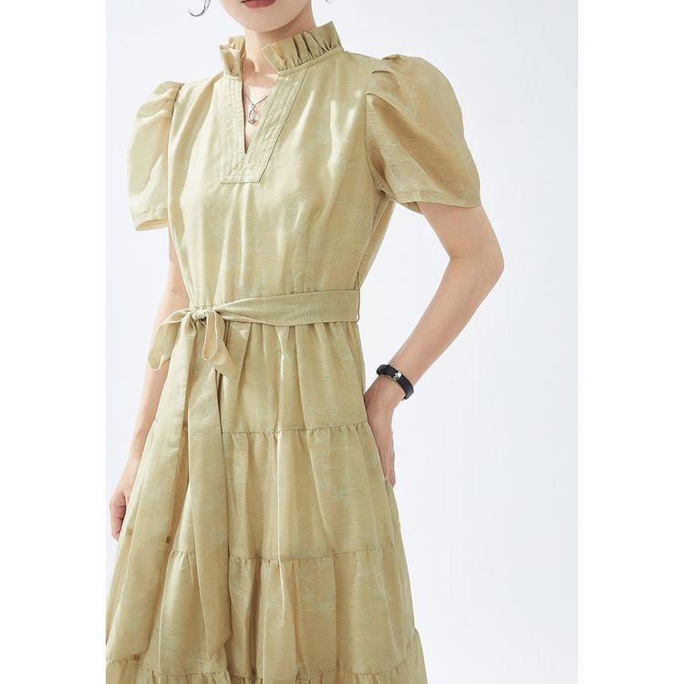 フリルカラー ウエストリボン ティアード ワンピース 4color 25165