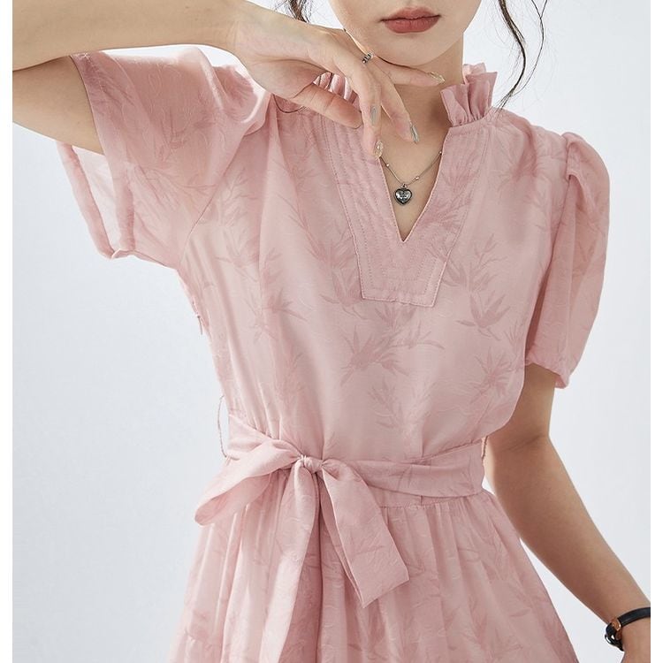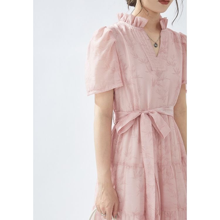 #ピンクドレス #ファッション #スタイル #ティアードドレス #ウエストリボン
