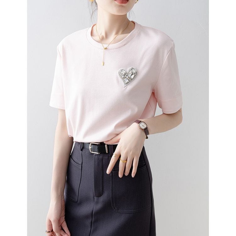 ハートビジューモチーフ Tシャツ 25188