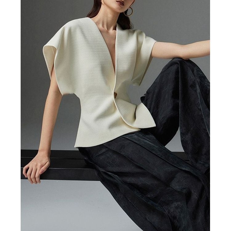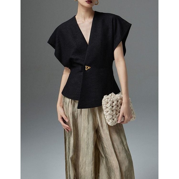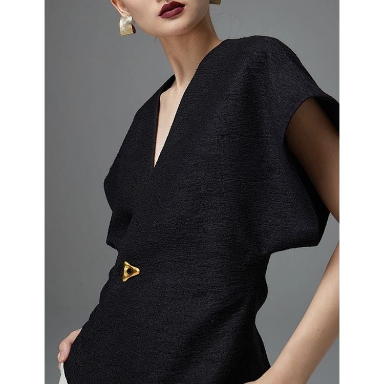 #ファッション #スタイル #ブラックアンドゴールド #ドルマンスリーブ #Vネック