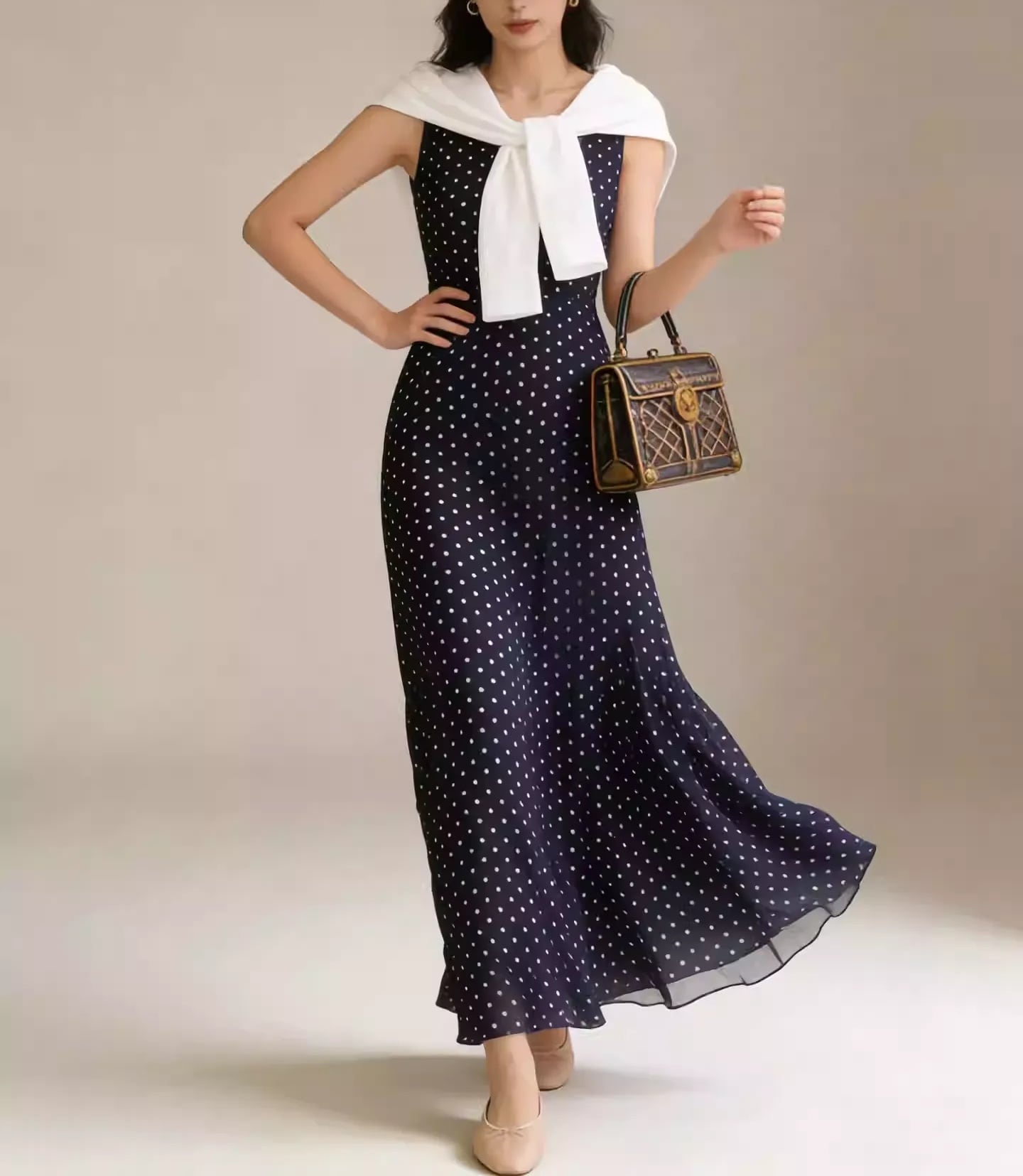 #ポルカドット #ドレススタイル #ファッション #カジュアルコーデ #ベンチシーン