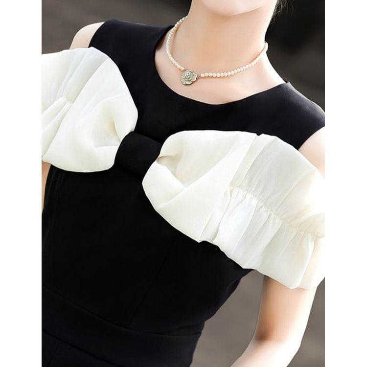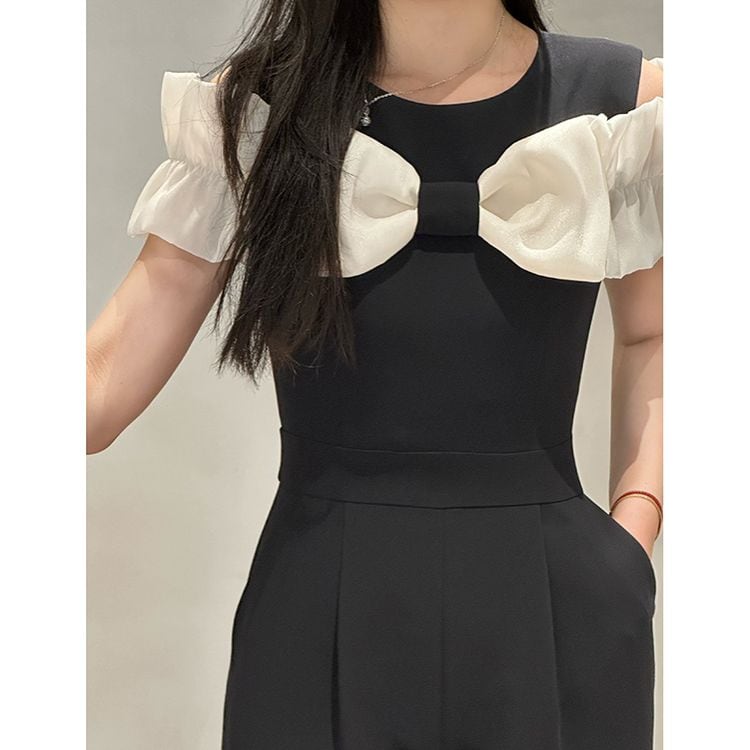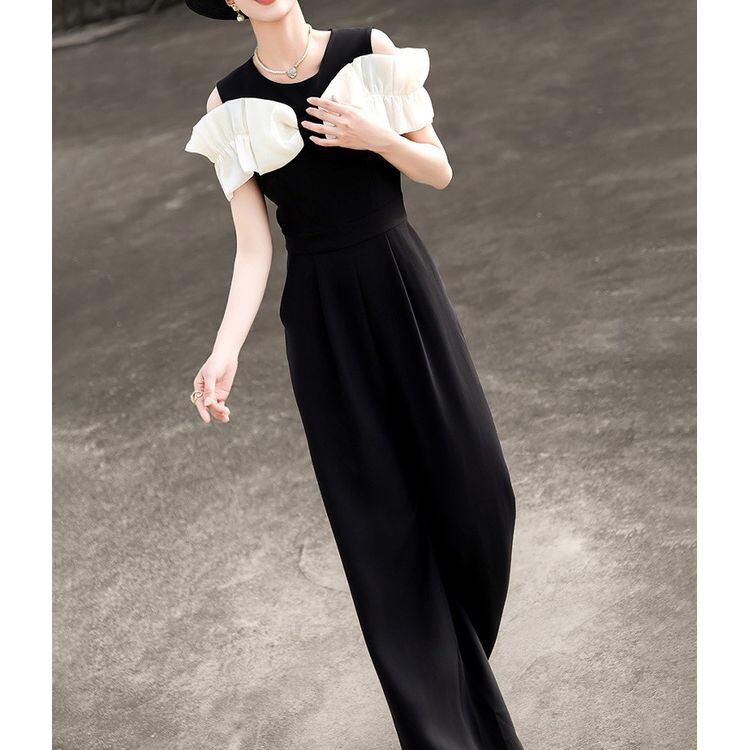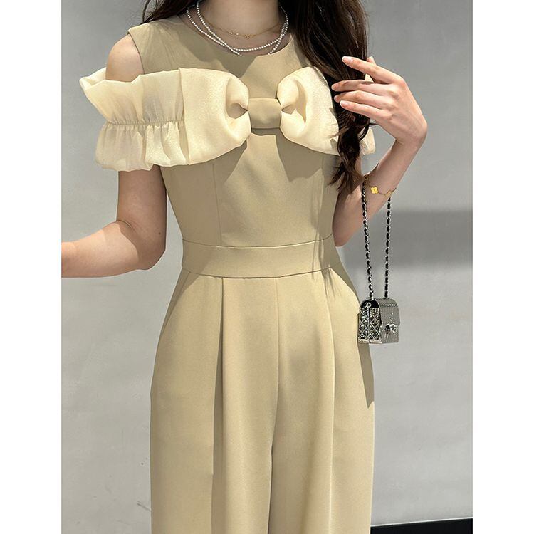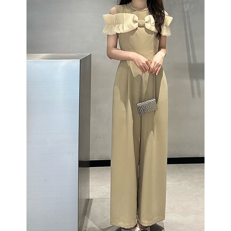 リボン ショルダー ワイドレッグ サロペット 2color 25238