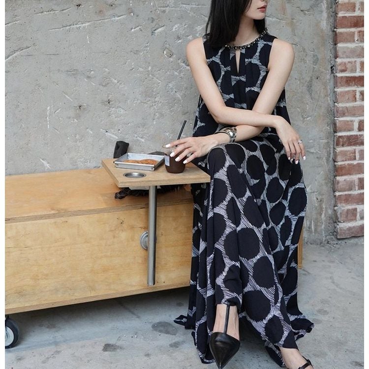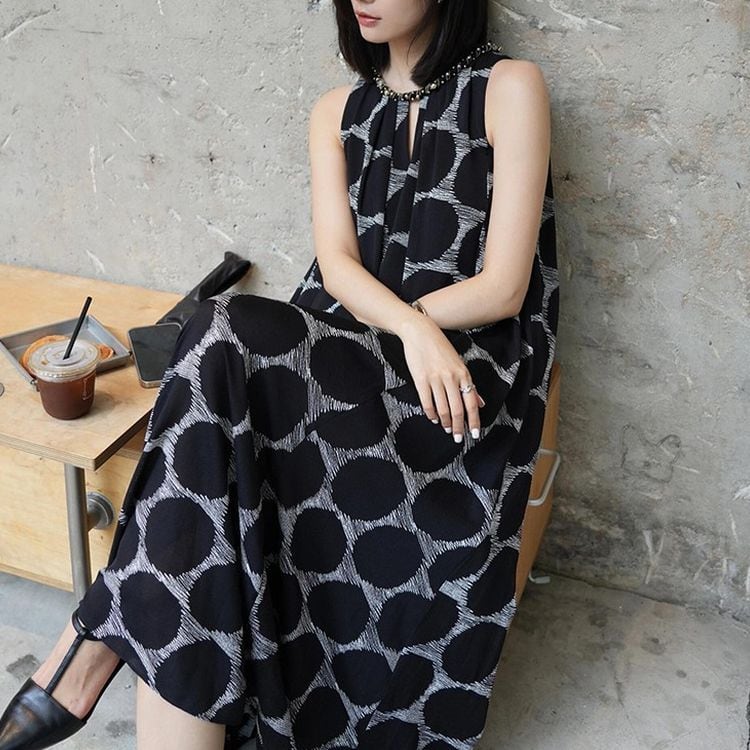 ドット ノースリーブ マキシワンピース 25241