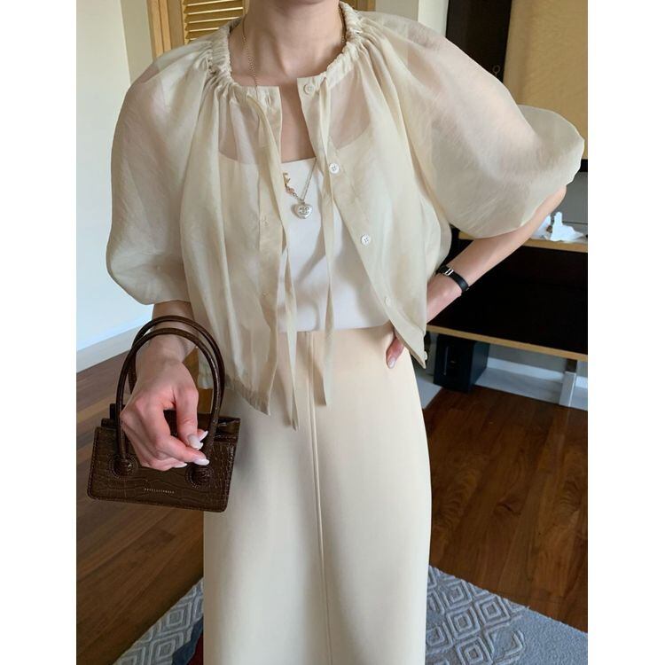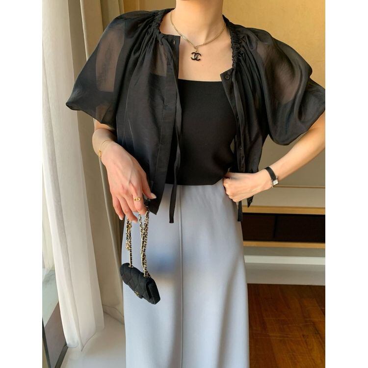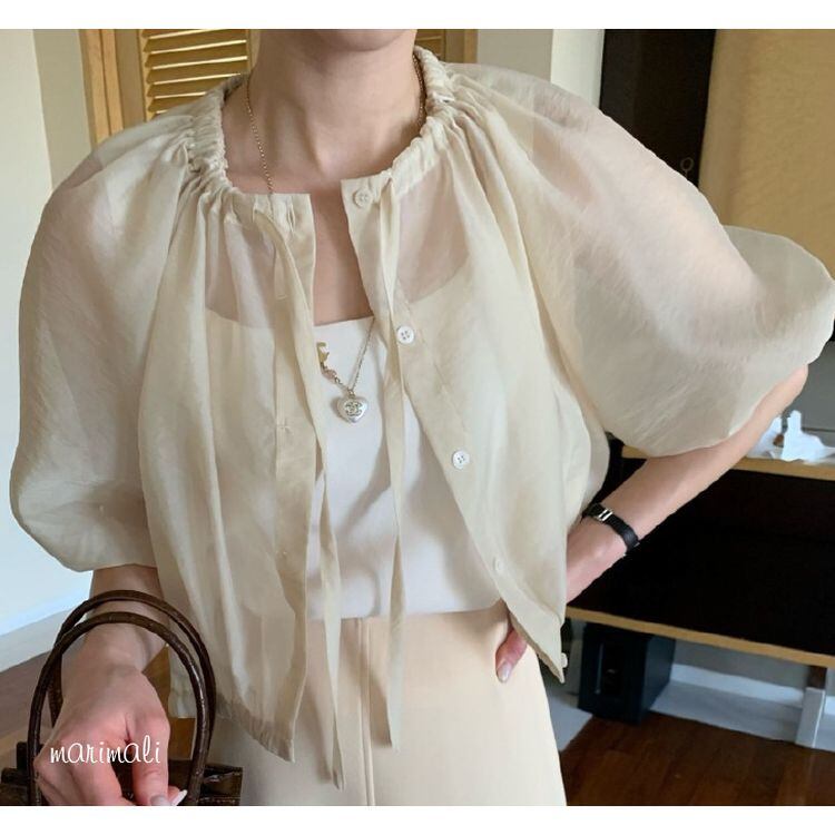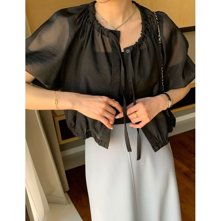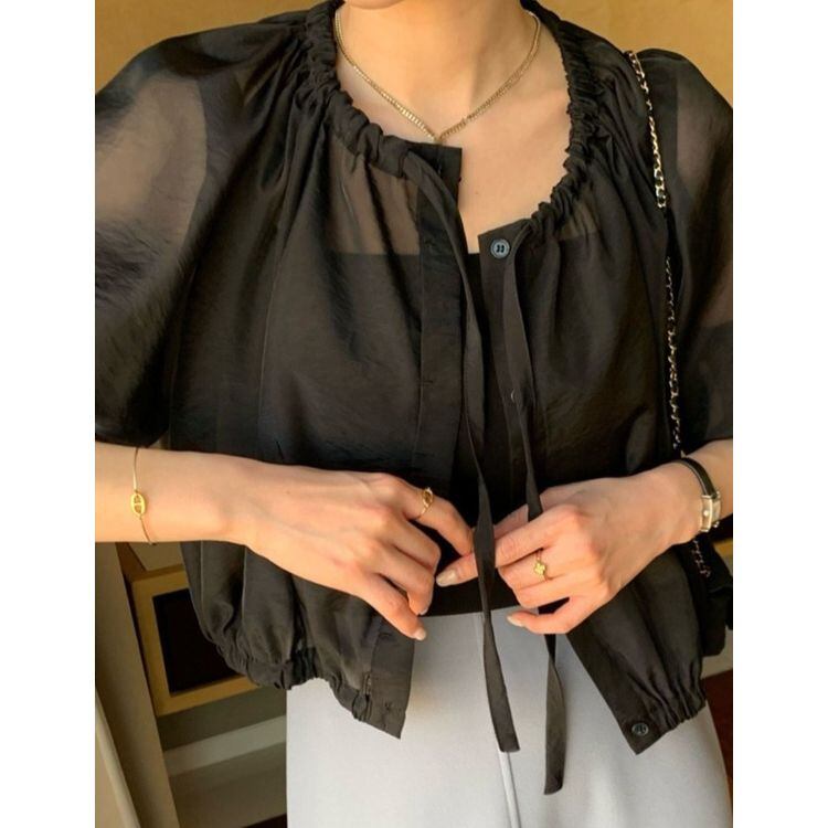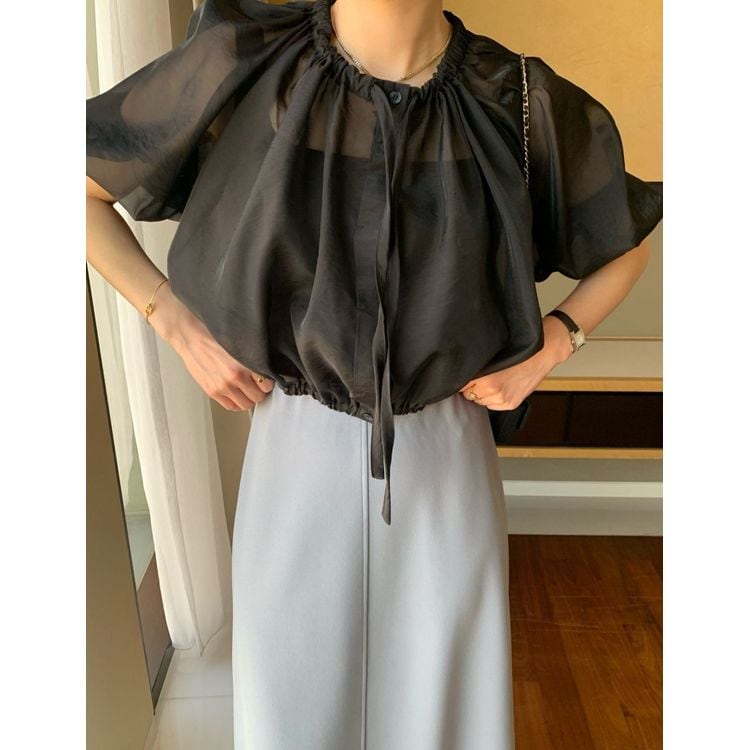 シアー パフスリーブ ドローストリング ブラウス 3color 25355