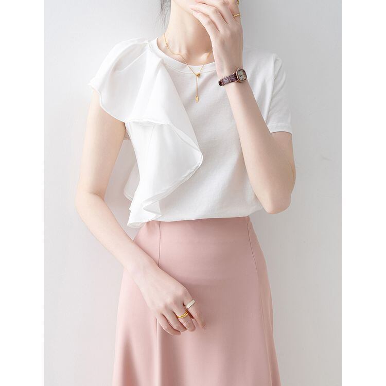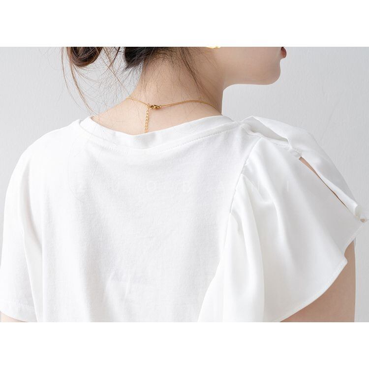 アシンメトリー ラッフルスリーブ Tシャツ 25367