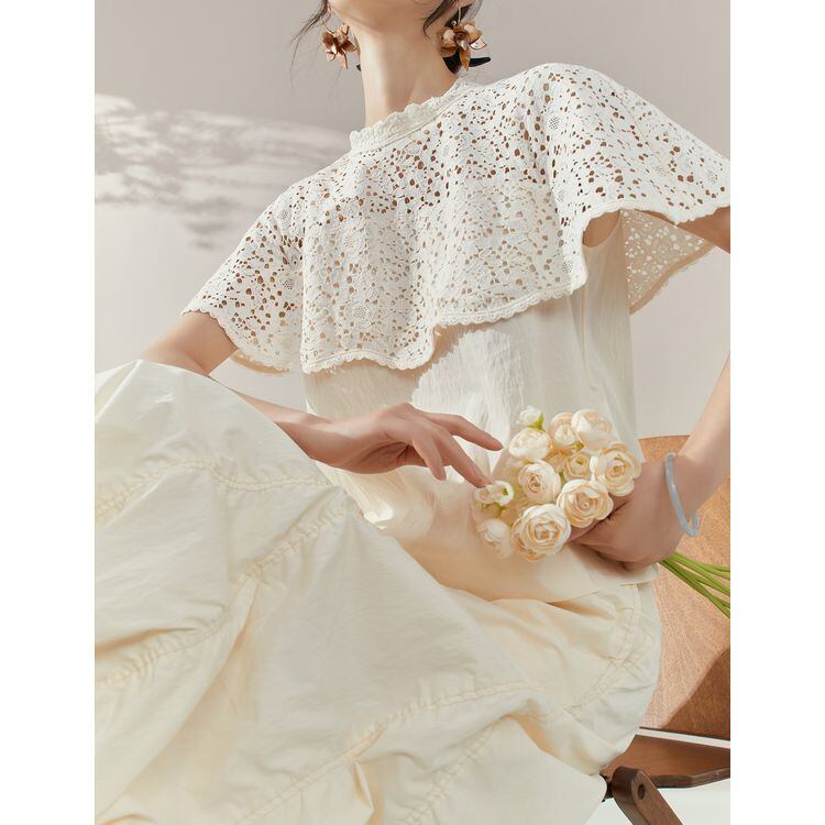 レースヨーク ケープカラー トップス 25379