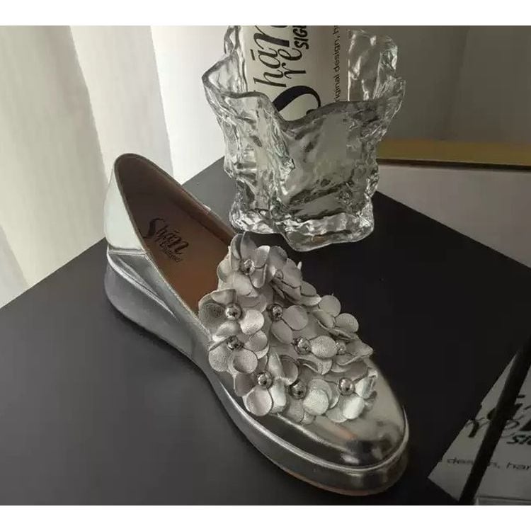 フラワーモチーフ エナメル ウェッジソール シューズ 3color 25383