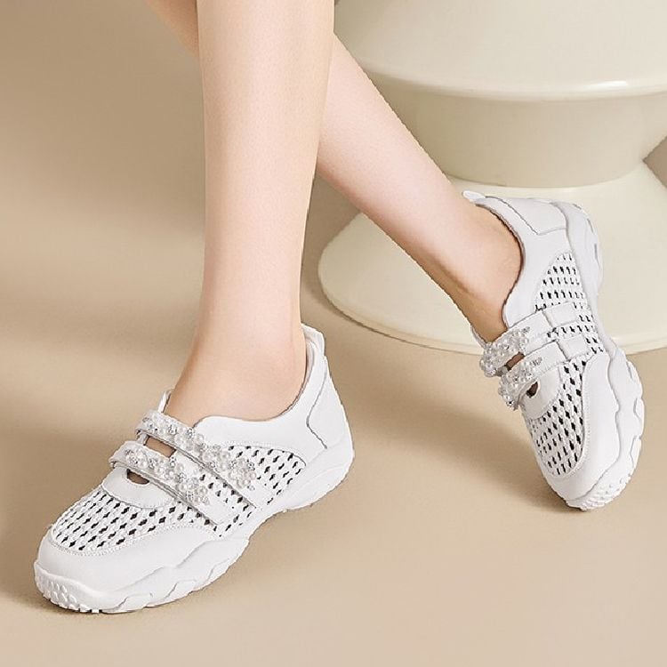 ビジュー ダブルストラップ メッシュ スニーカー 3color 25385
