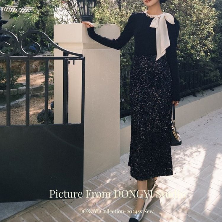 リボンタイ パールツイストネック トップス 25419
