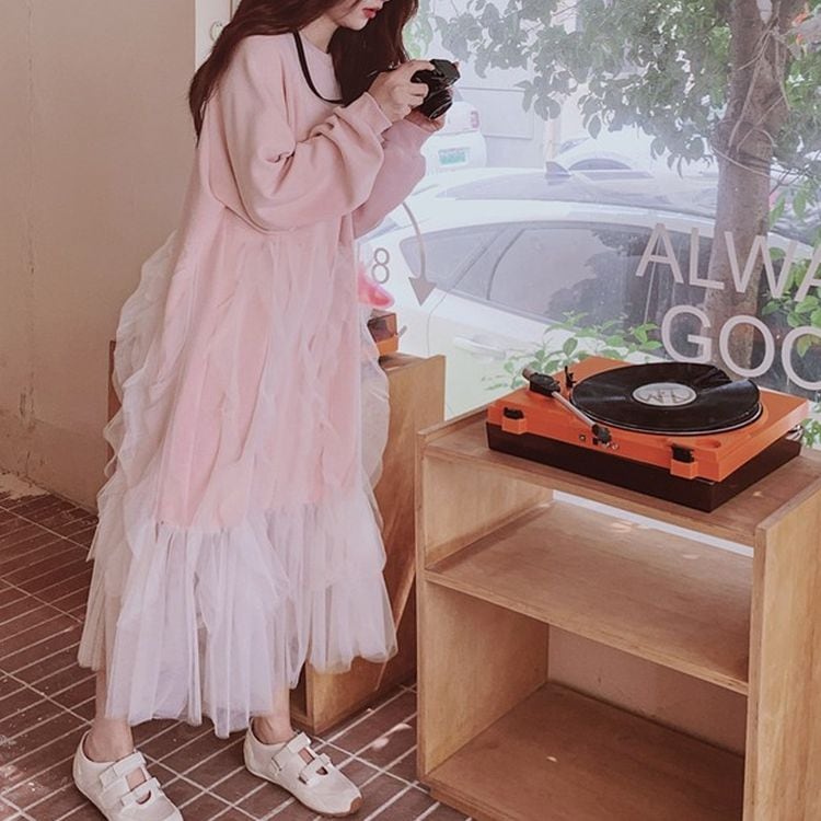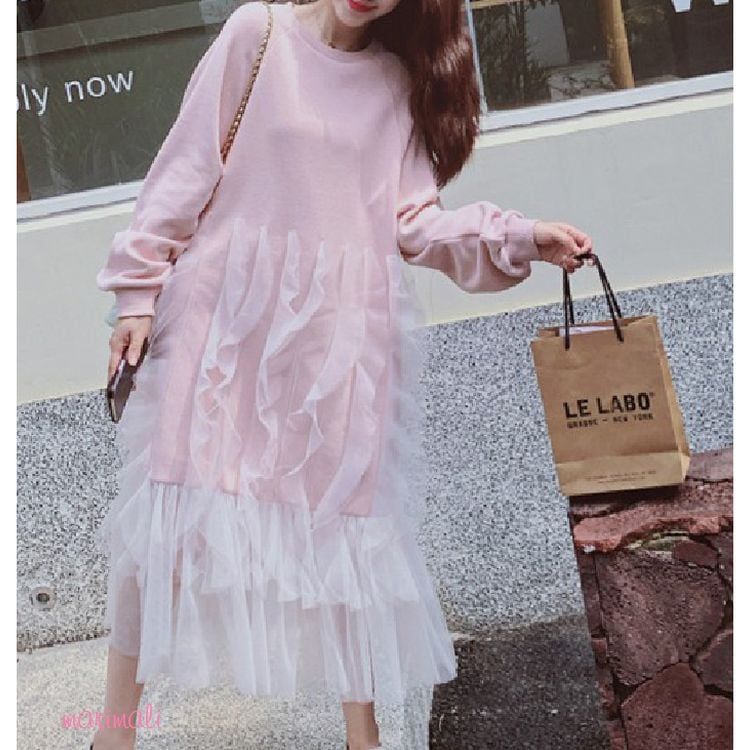 チュールフレア Aライン スウェット ワンピース 2color 25449