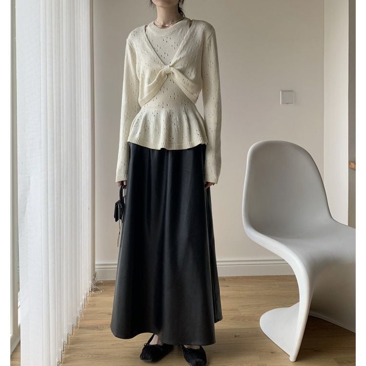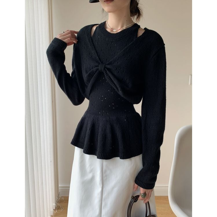 カーディガンのパンチングニット2点セット。