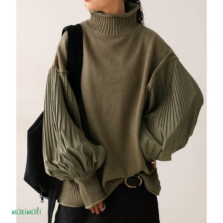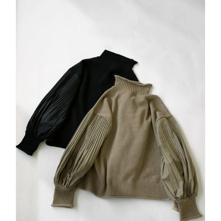 ハイネック プリーツ ボリューム スリーブ ニット 2color 25460