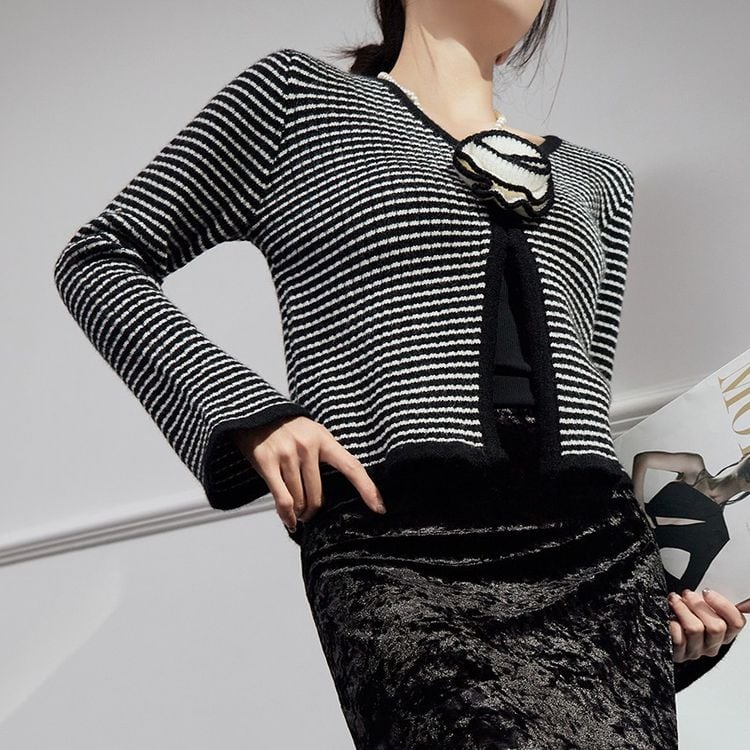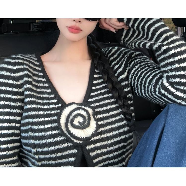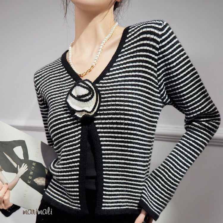 ボーダー Vネック ニット カーディガン 25486