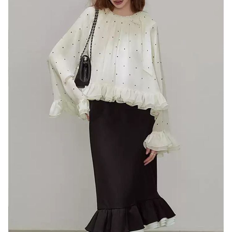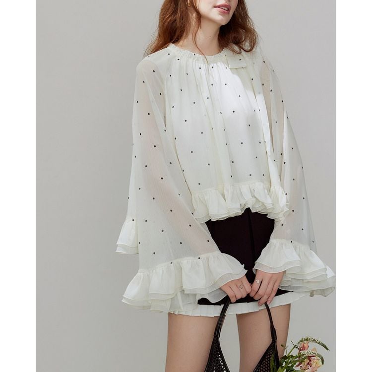 ドット フレアスリーブ フリルヘム ブラウス 25491