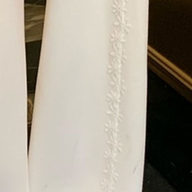 エレガントな花柄ステッチが目を引くストレートパンツです。