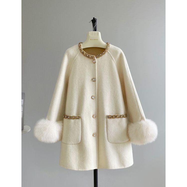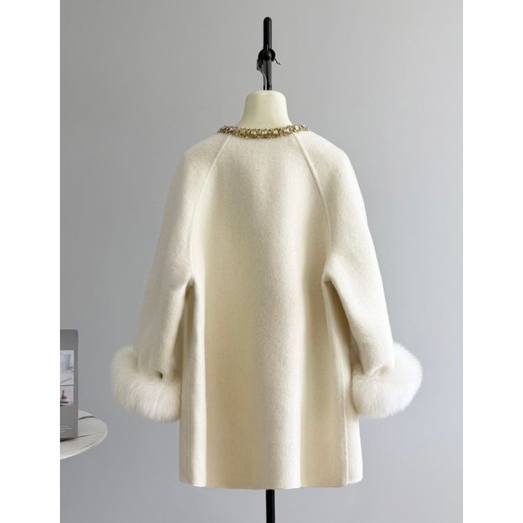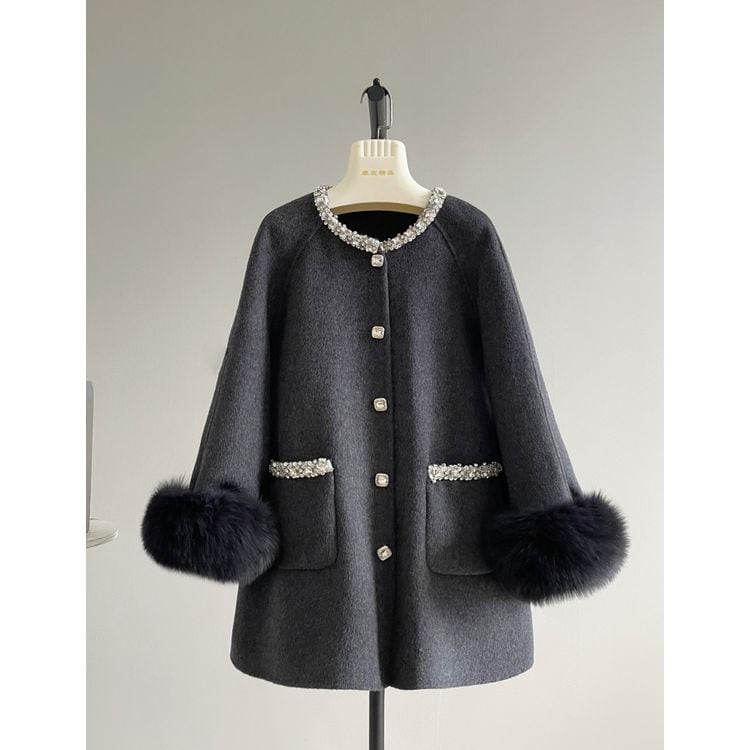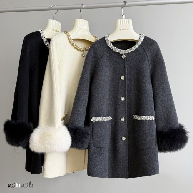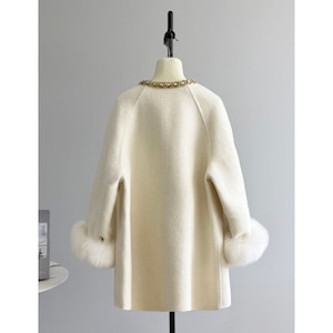 ビジューボタン ファーカフス コート 3color 25505