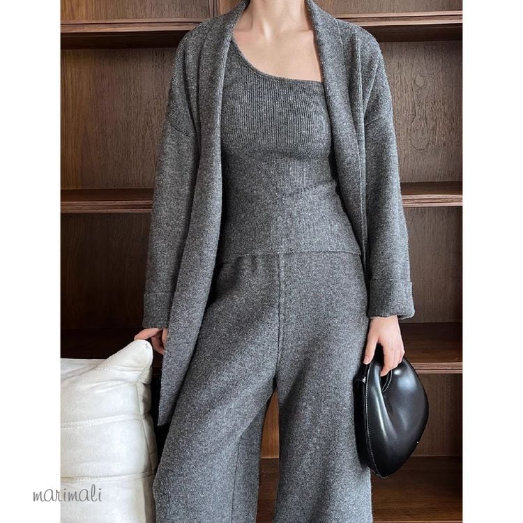 <3点セット>ニット ワンショルダートップス+カーディガン+パンツ 2color 25511
