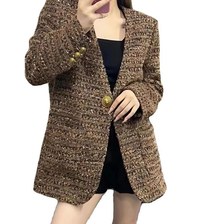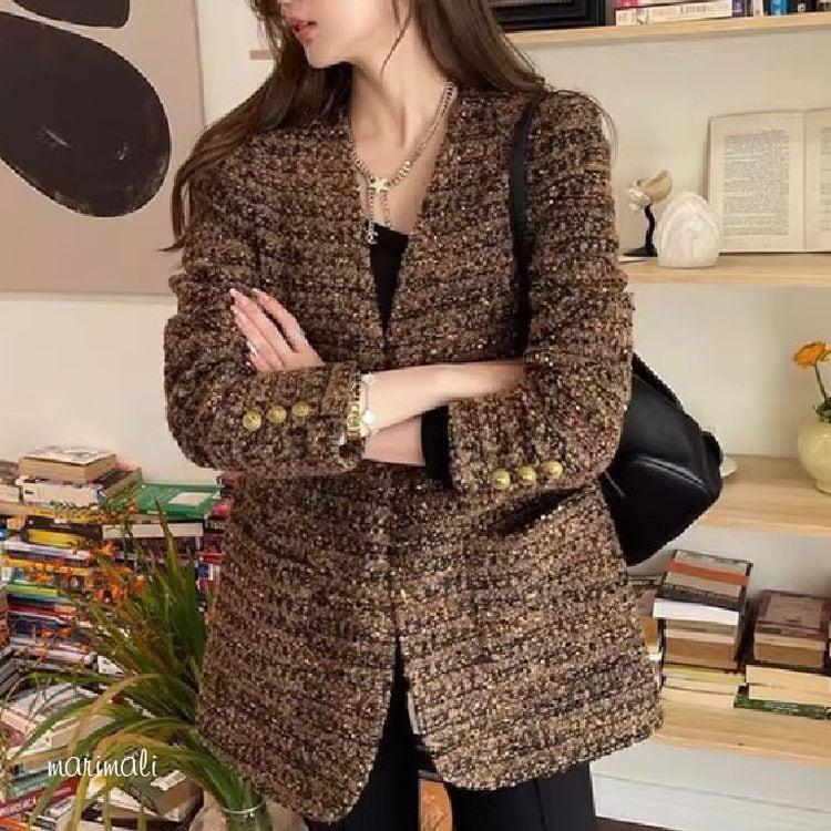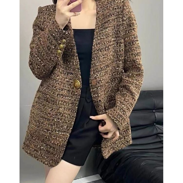 ツイード ミドル丈 ノーカラー ジャケット 2style 25521