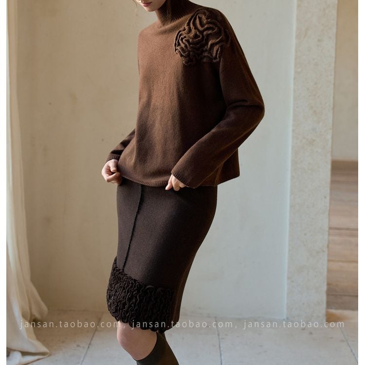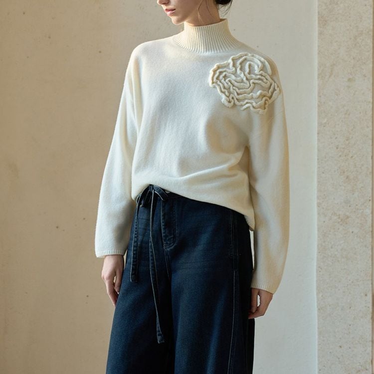 フラワーモチーフ ハイネック ニット 3color 25538