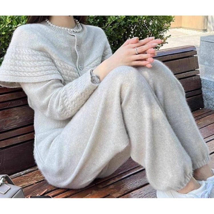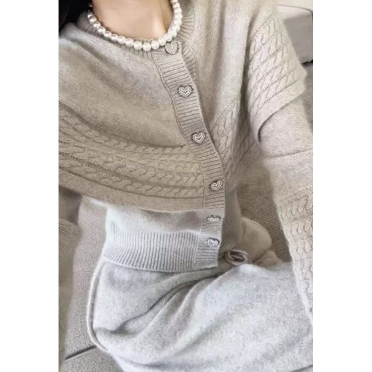 ハートボタン ケープカーディガン+パンツ セット25544