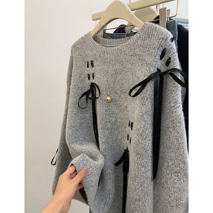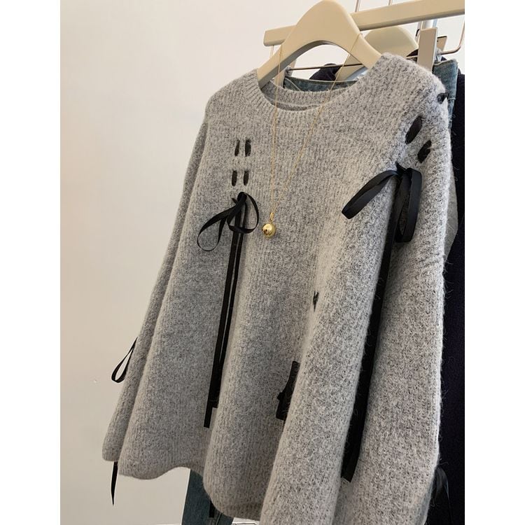 リボンデザイン プルオーバー ニット 26002
