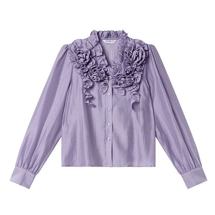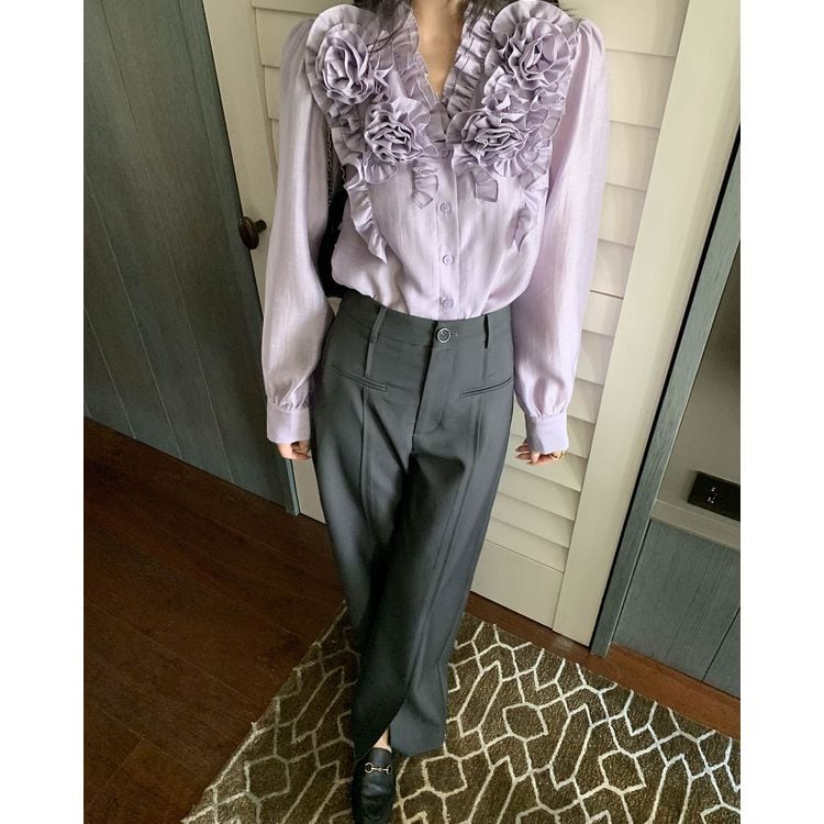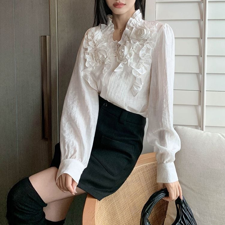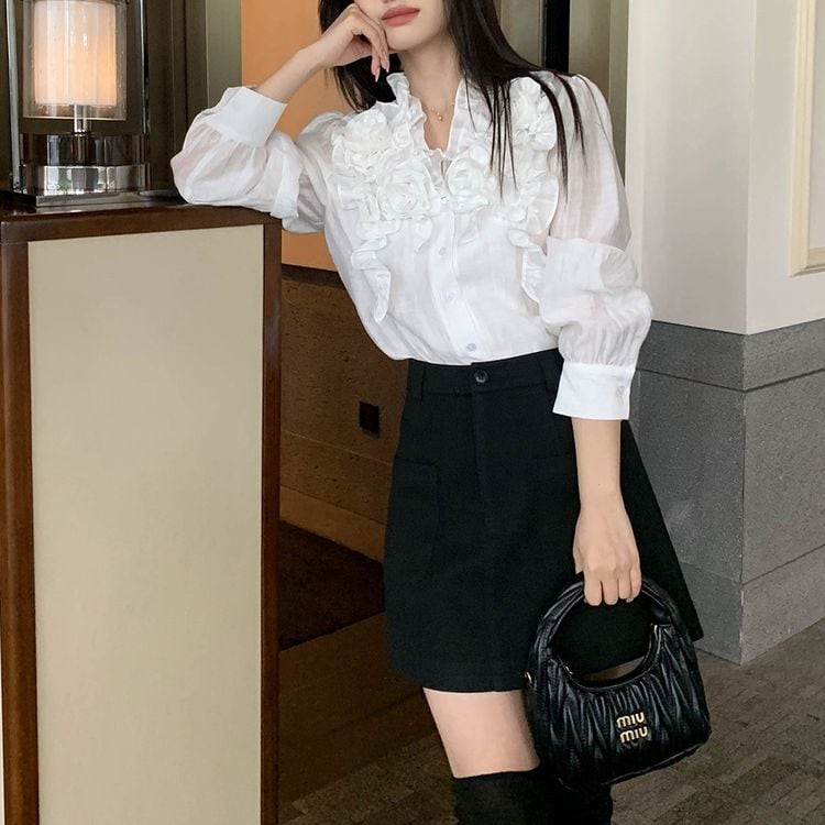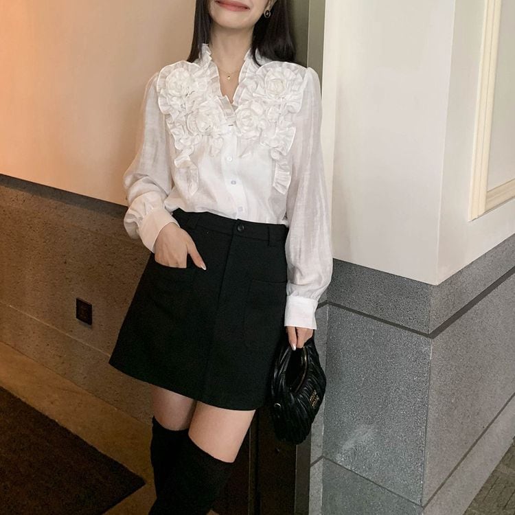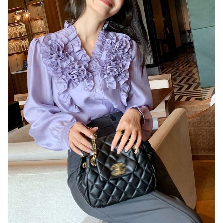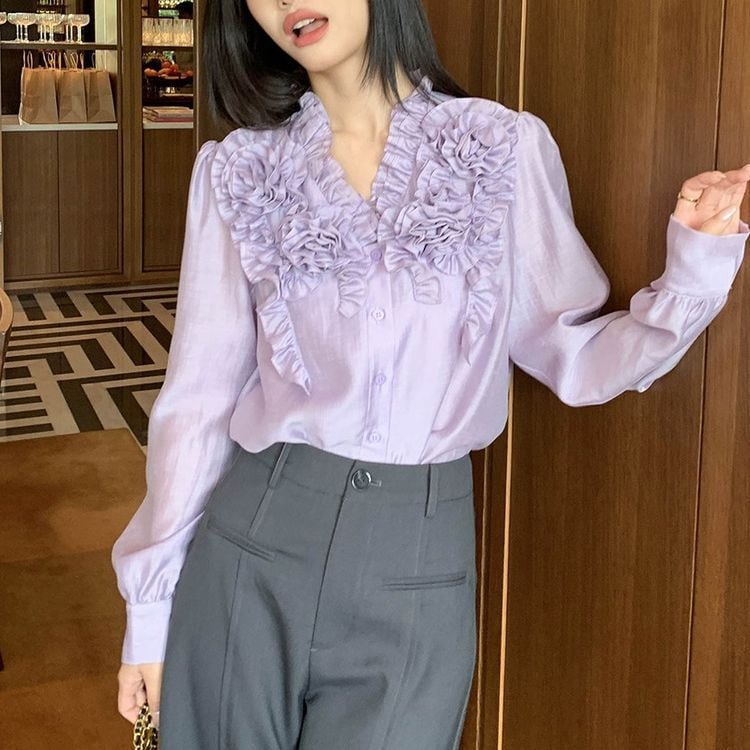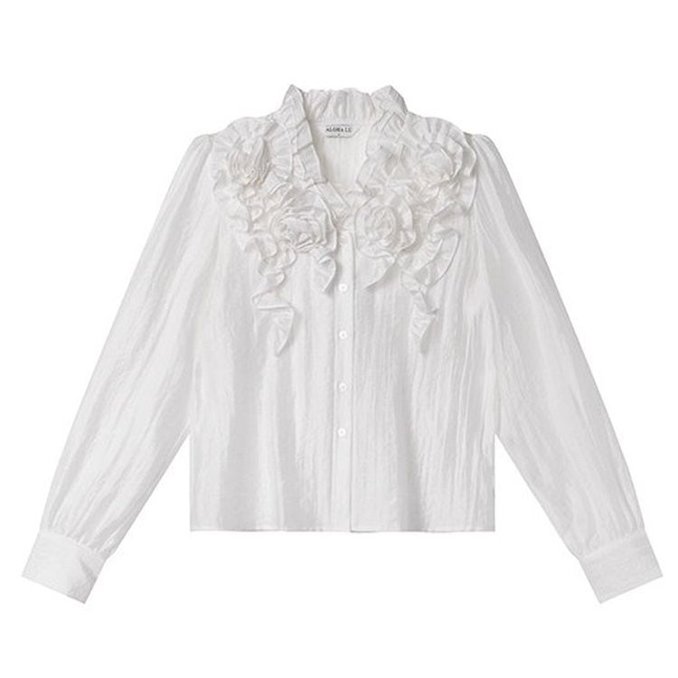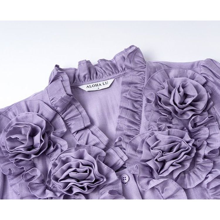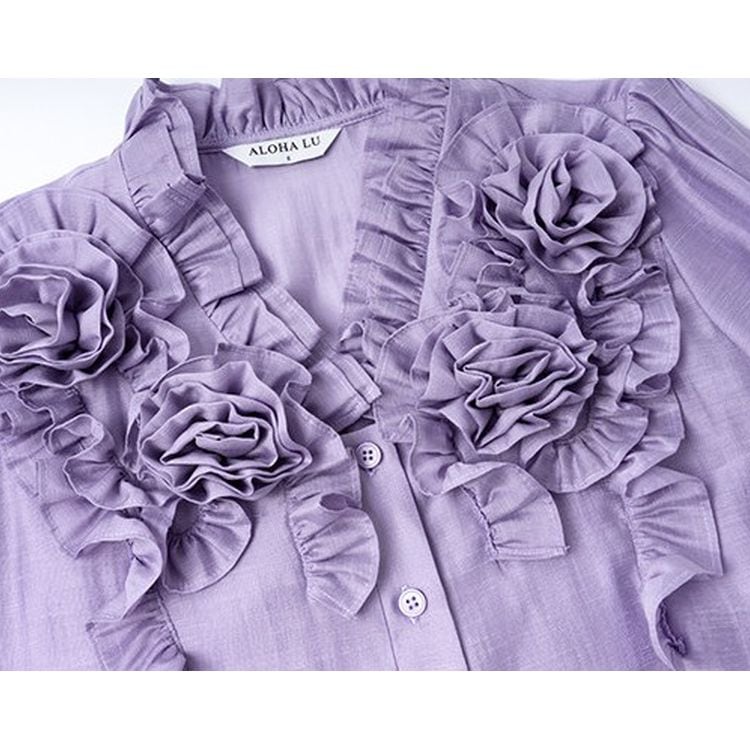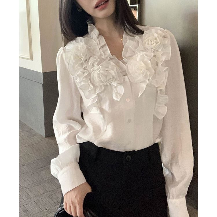 フラワーフリル Vネック シャツ ブラウス 2color 26003
