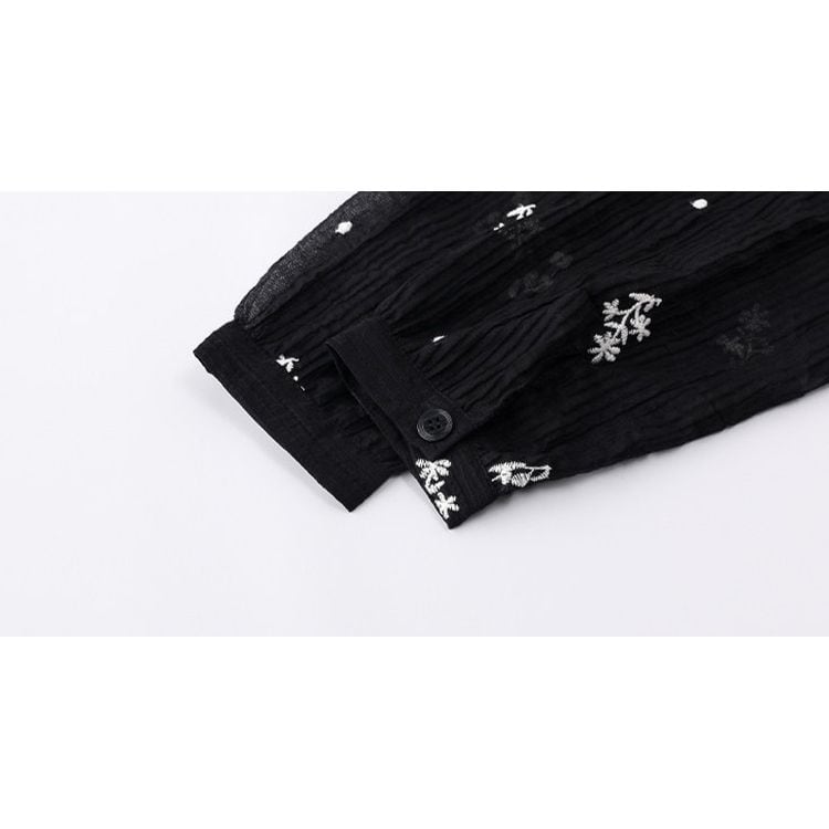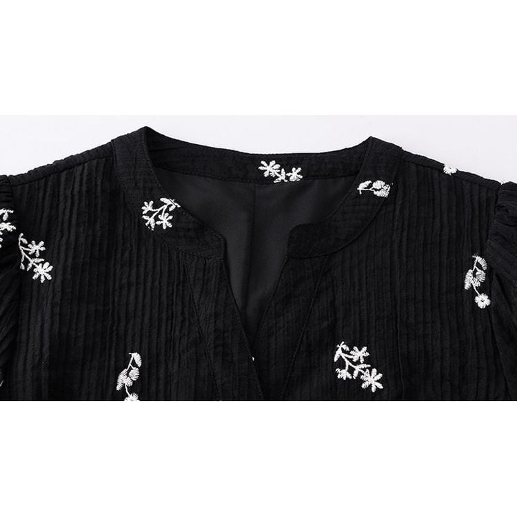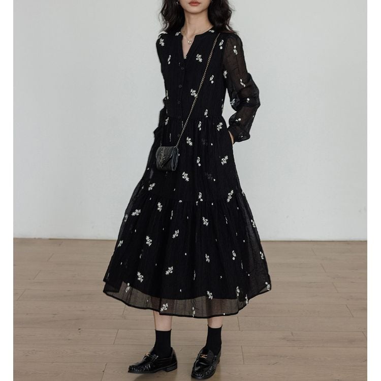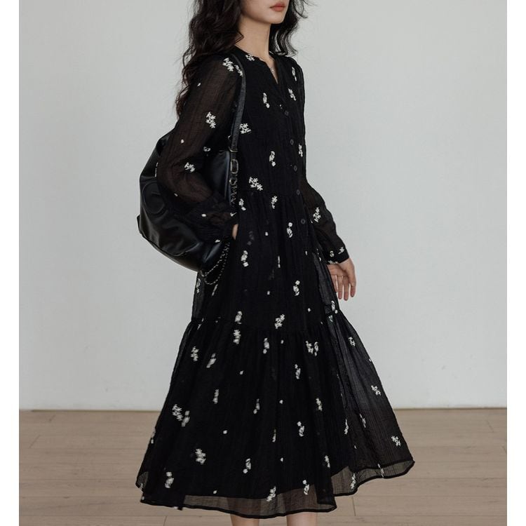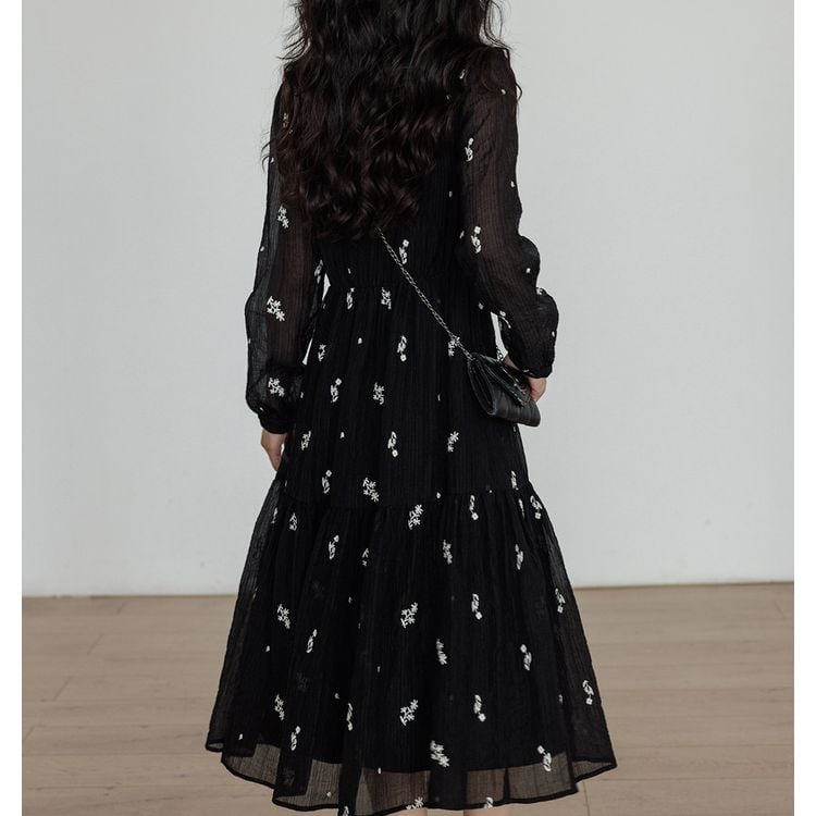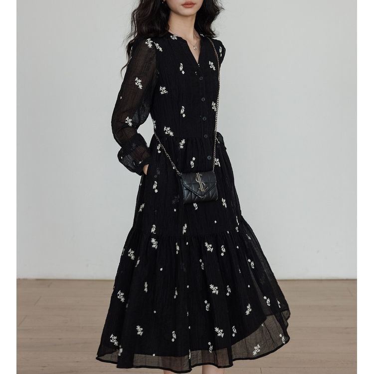 キーネック プランツ刺繍 シフォン ワンピース 26012