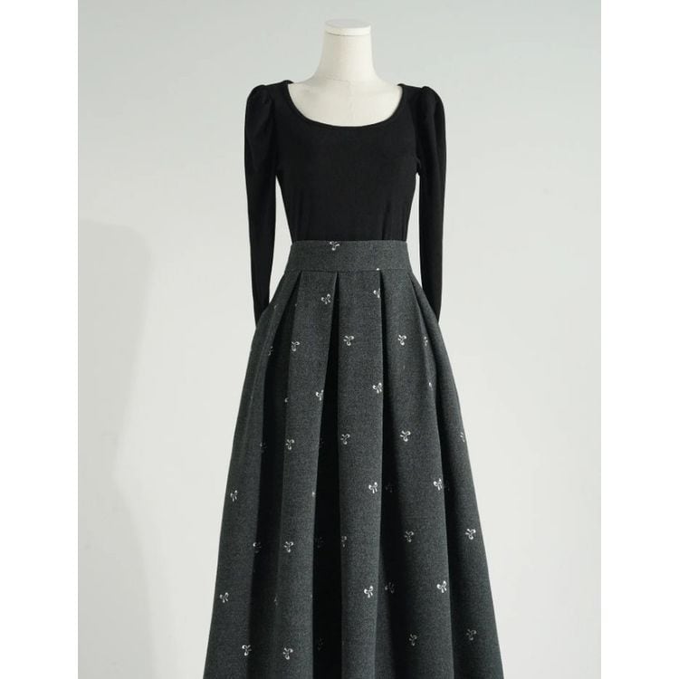 クラシカルな雰囲気漂うミモレ丈のAラインスカート。