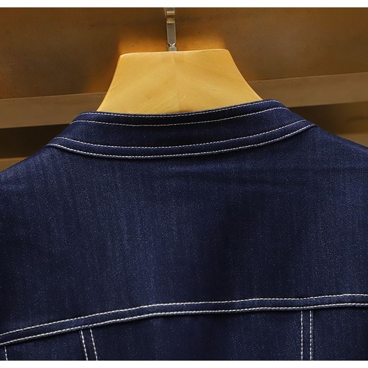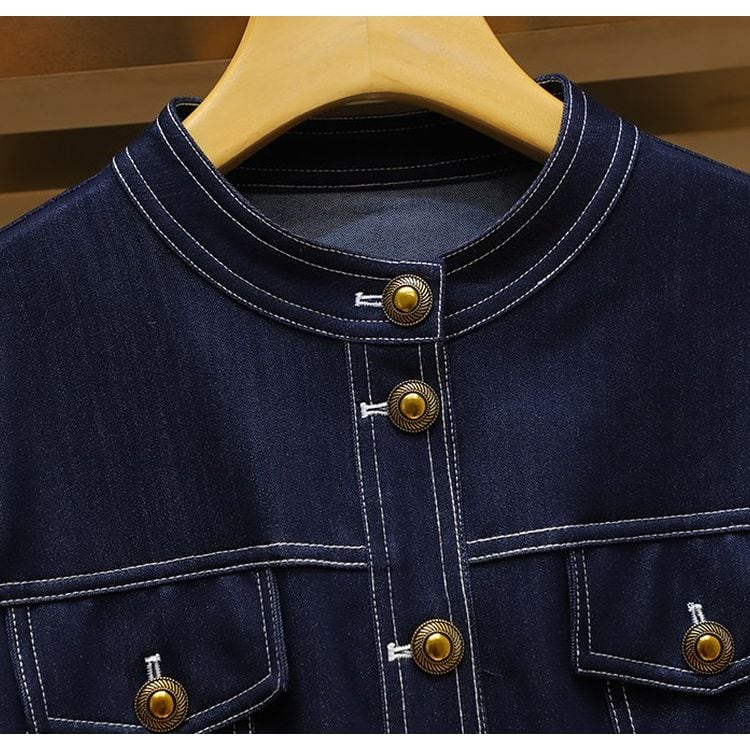 ノーカラー ペプラム デニム シャツ ジャケット 26018