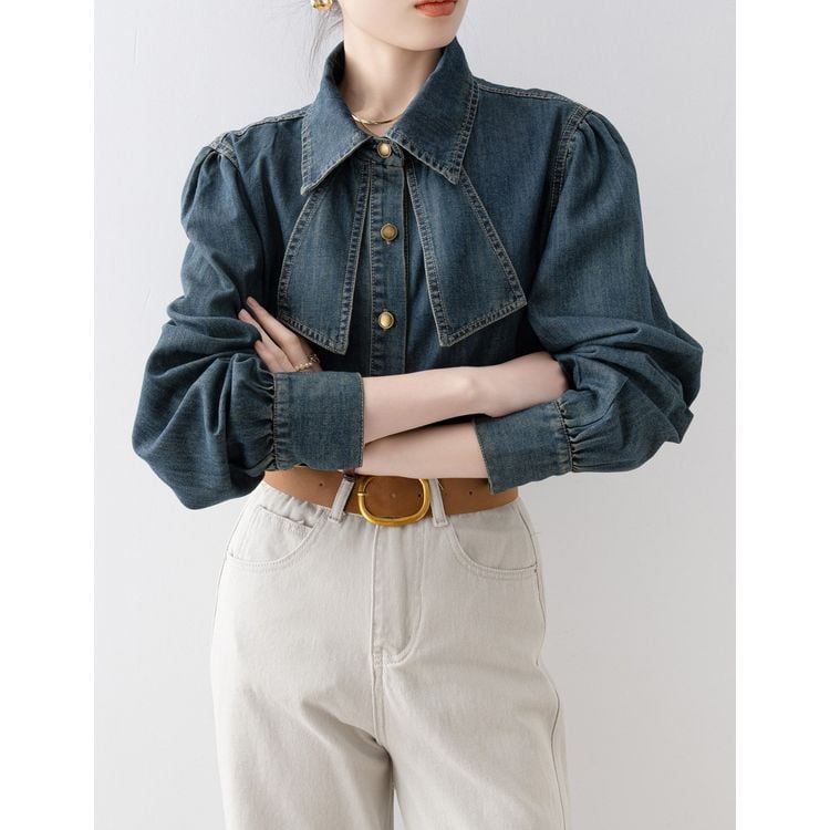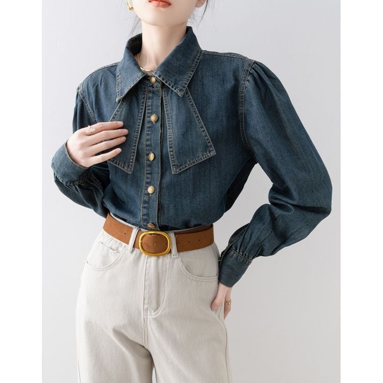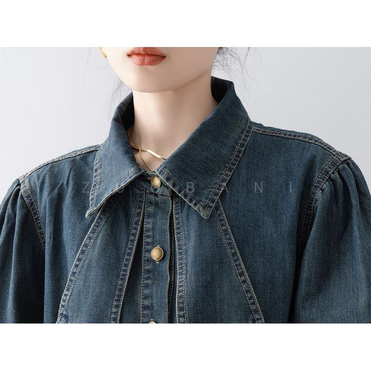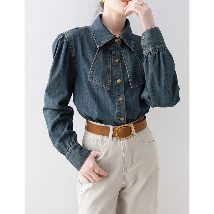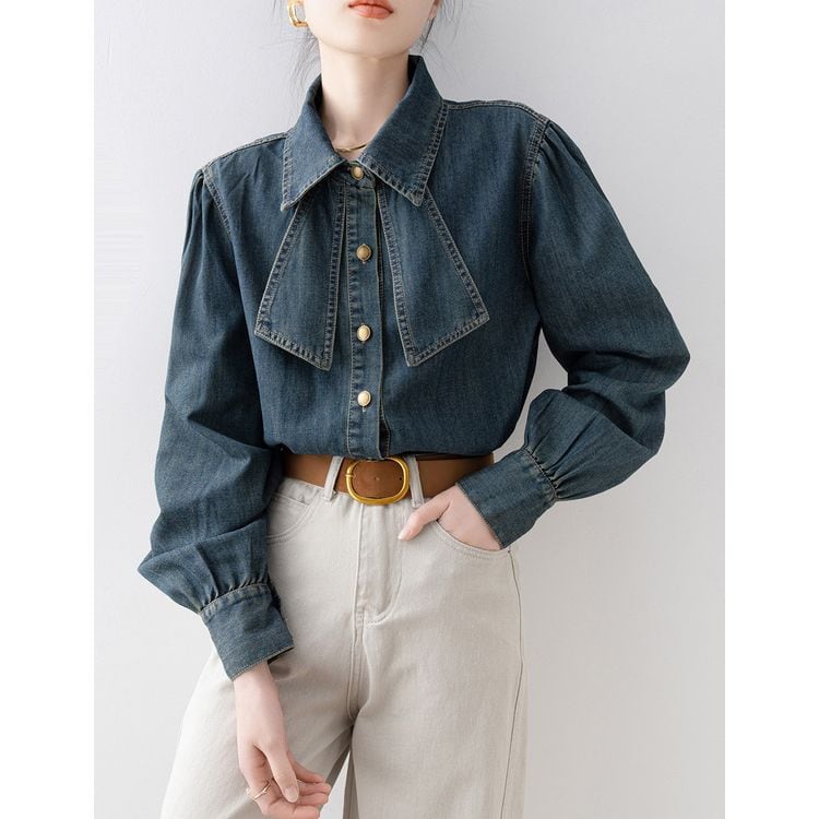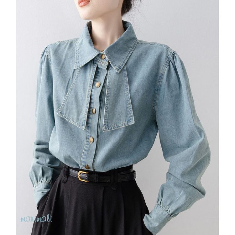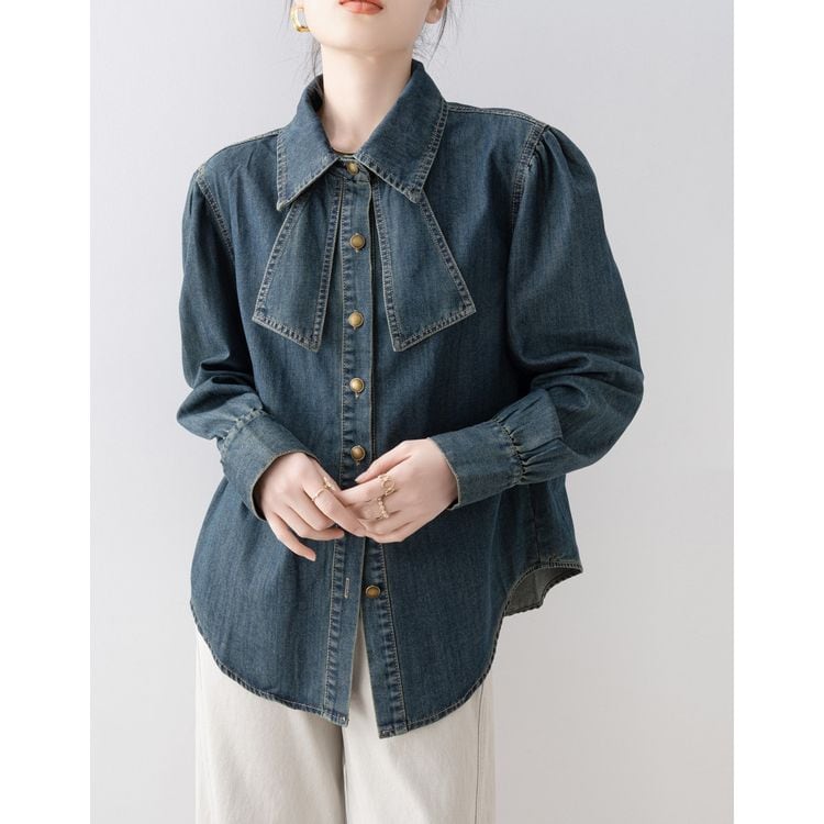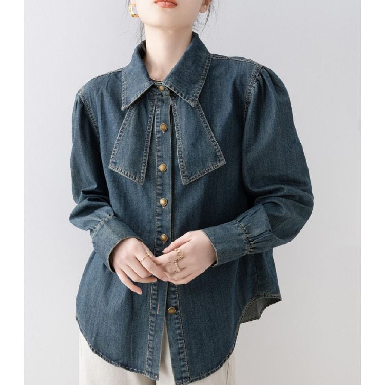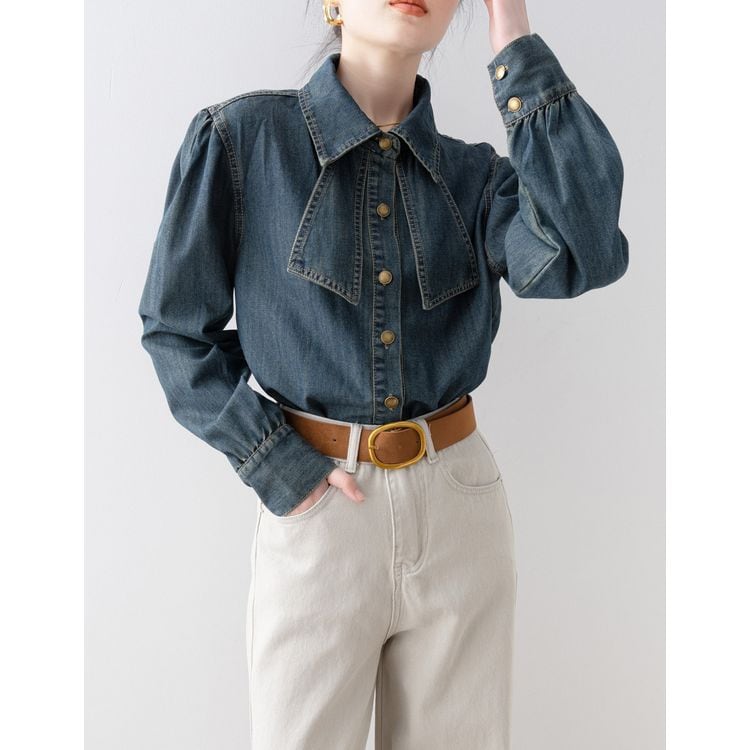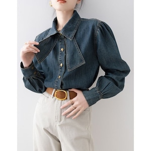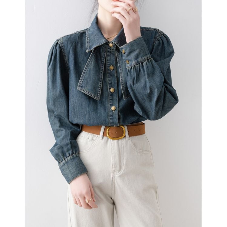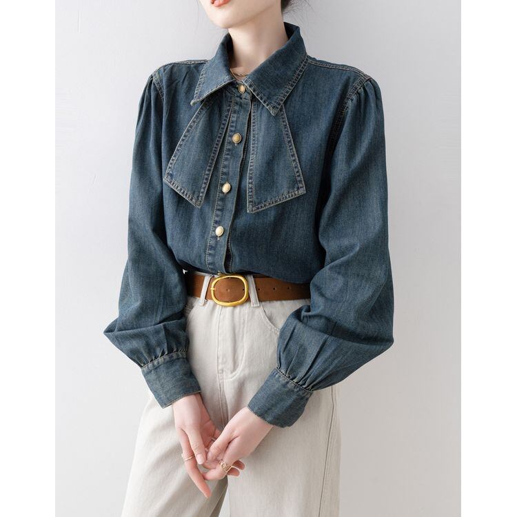 リボンタイ デニムスタイル シャツ 2color 26031