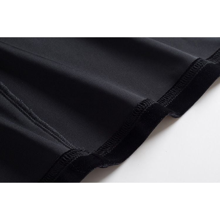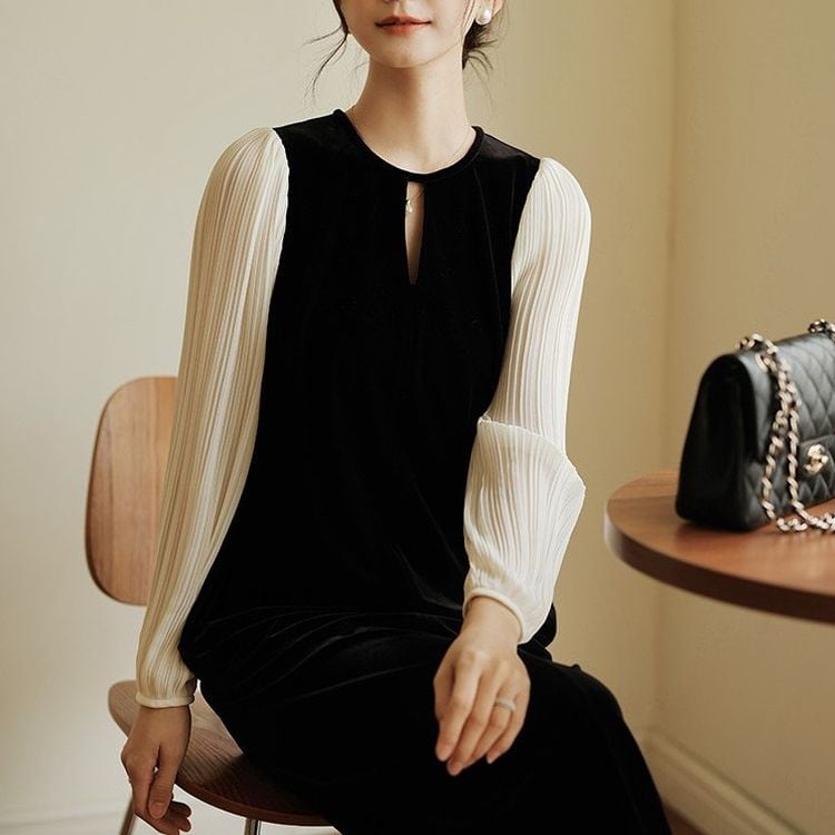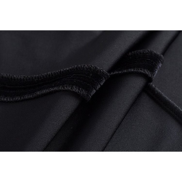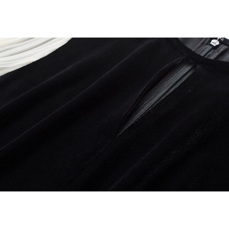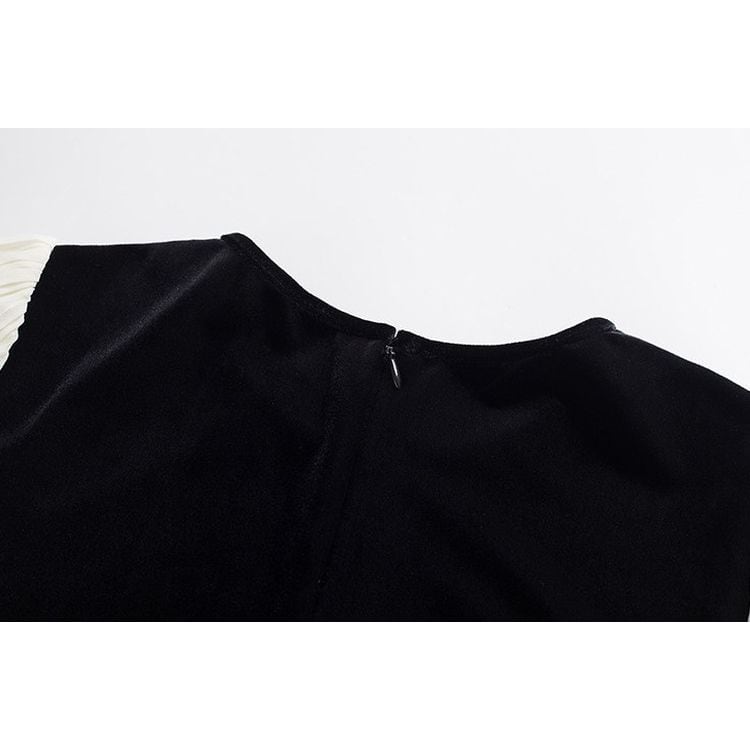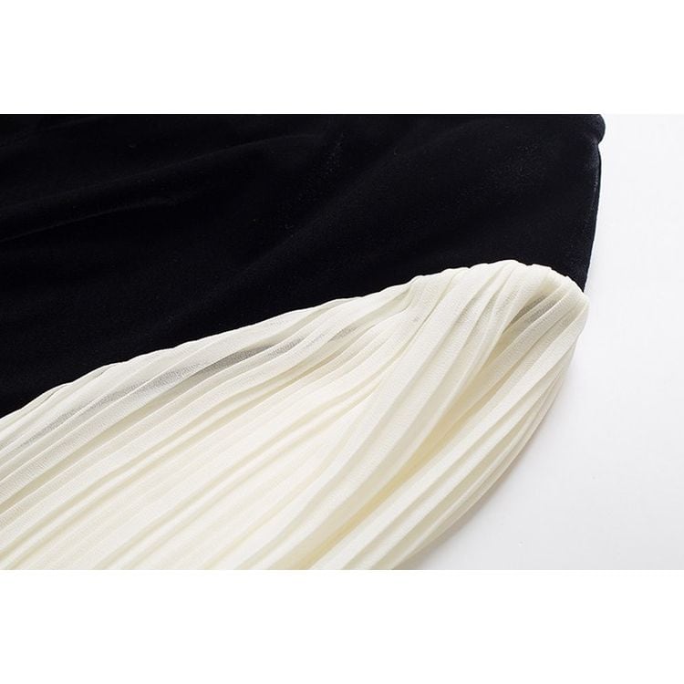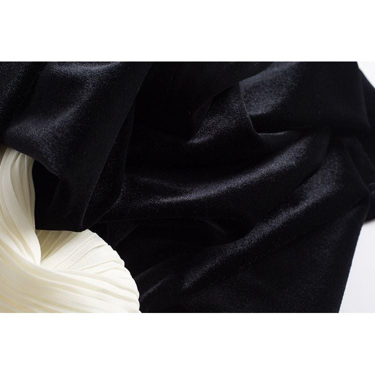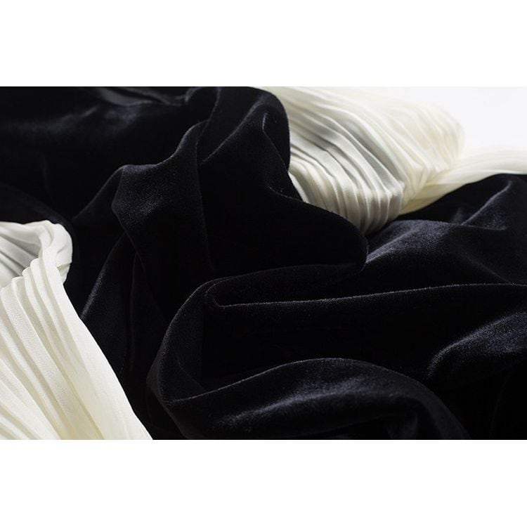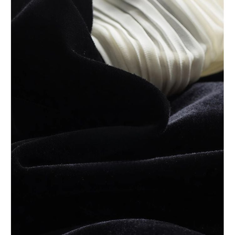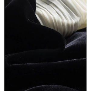 滑らかなベロアの質感とシフォンの軽やかさが、女性らしさを引き立てます。