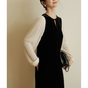 ベロア シフォンスリーブ ワンピース 26046