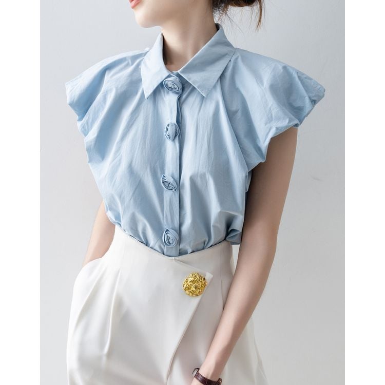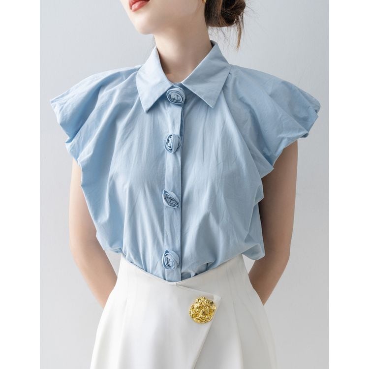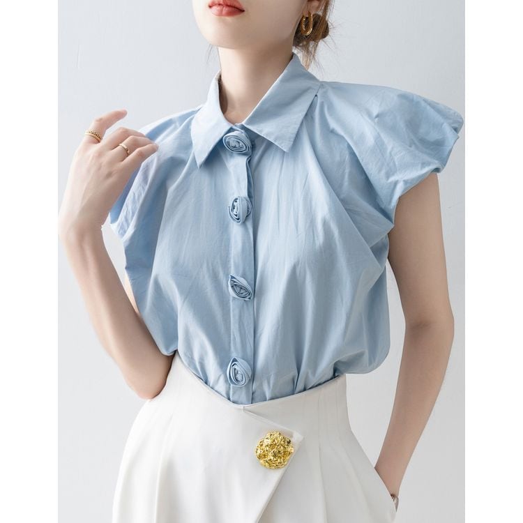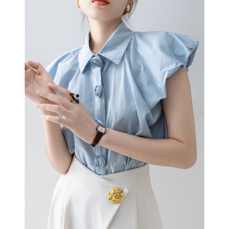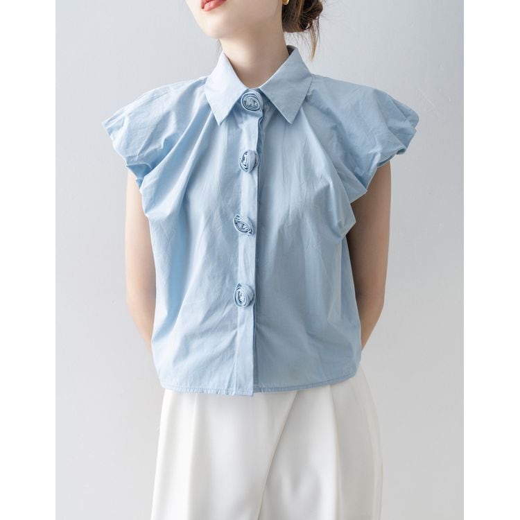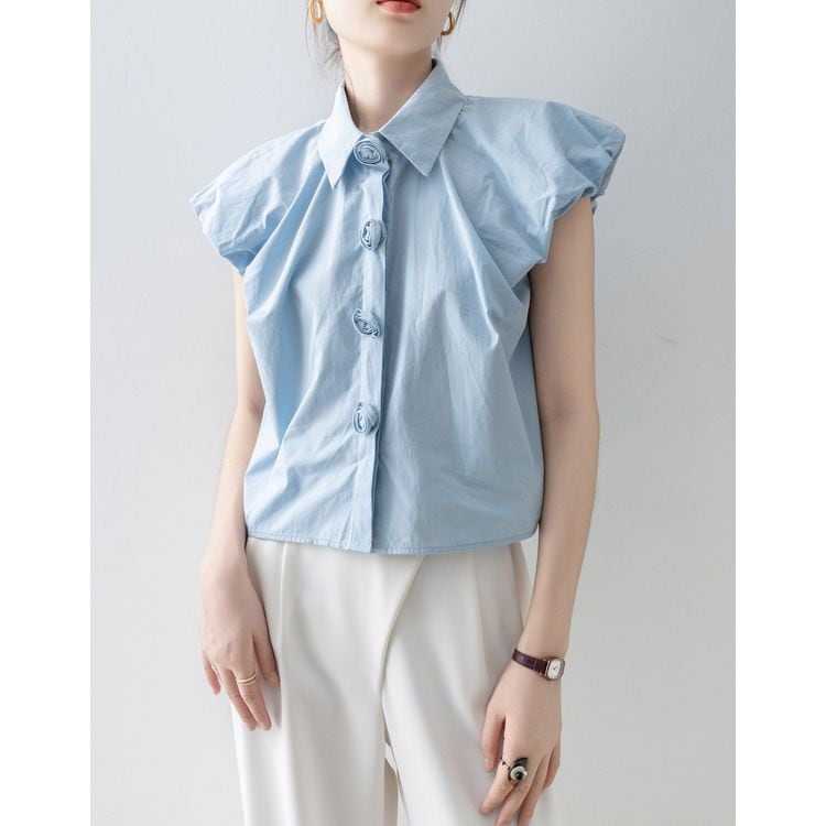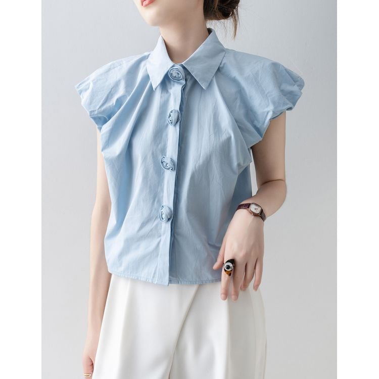パフスリーブ デザイン ボタン シャツ ブラウス 26053