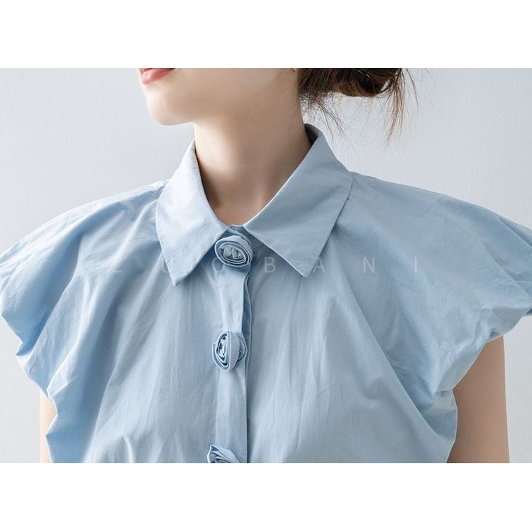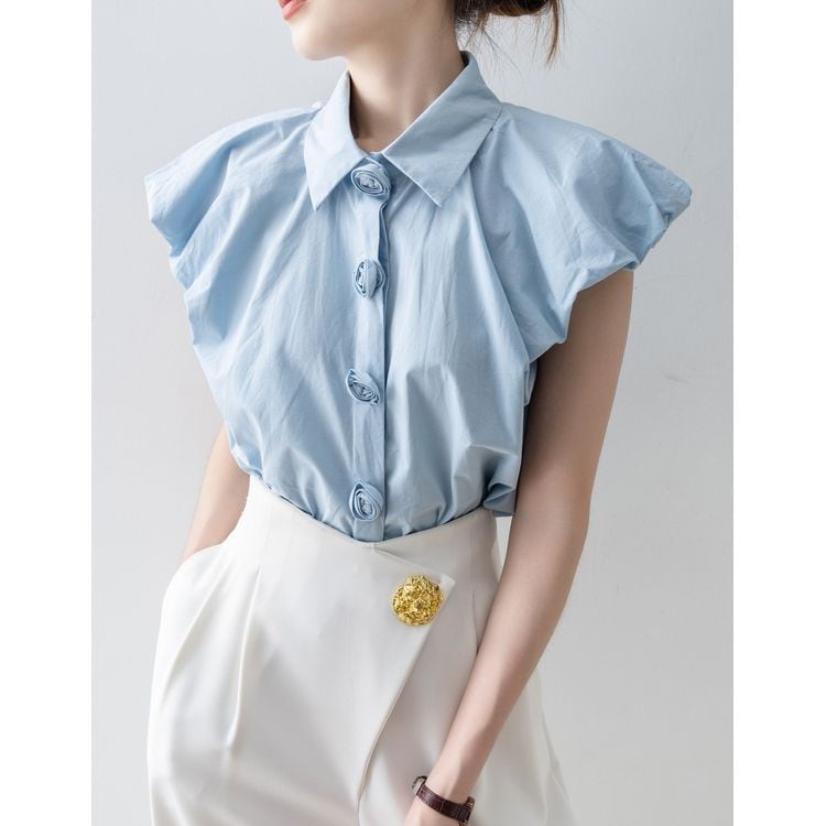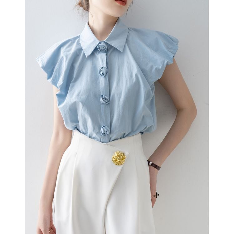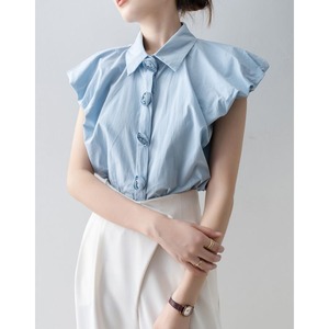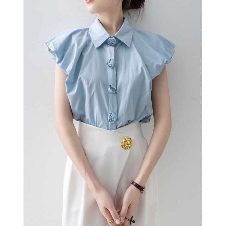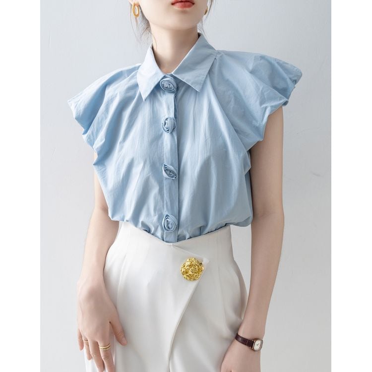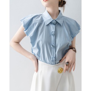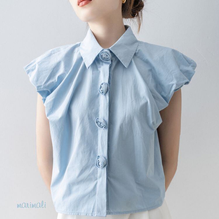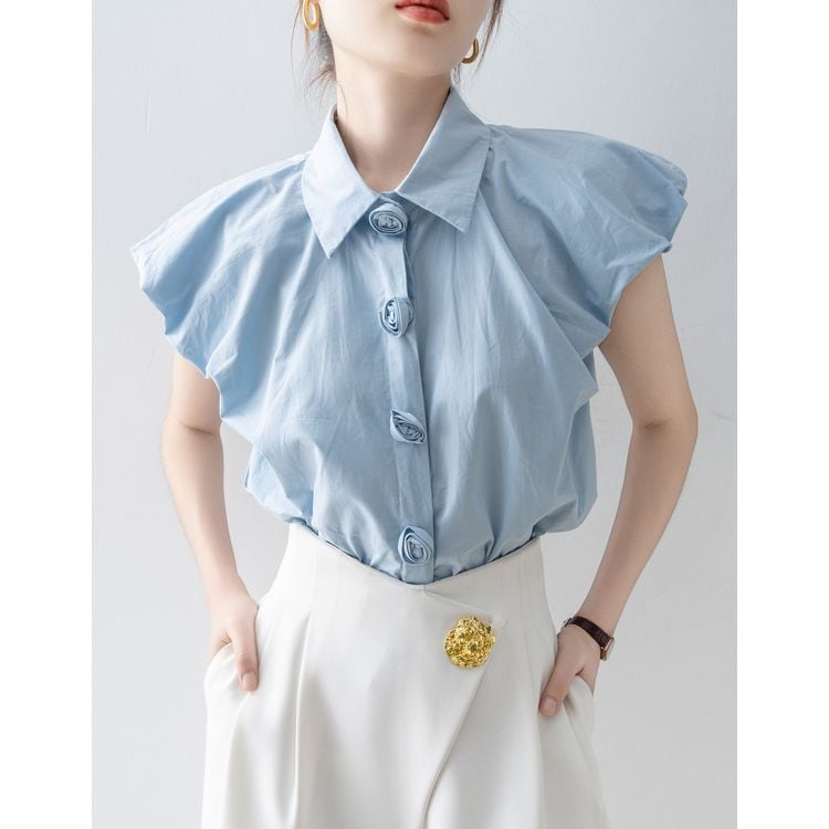 パフスリーブ デザイン ボタン シャツ ブラウス 26053