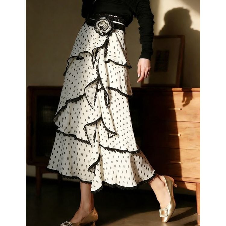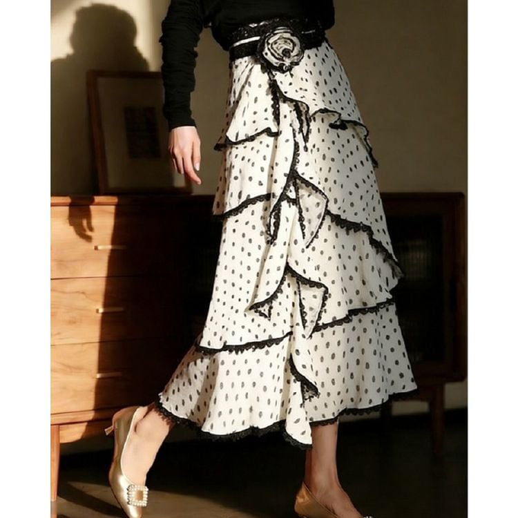 ドット シフォン ティアード スカート 26054