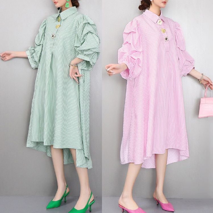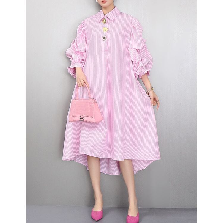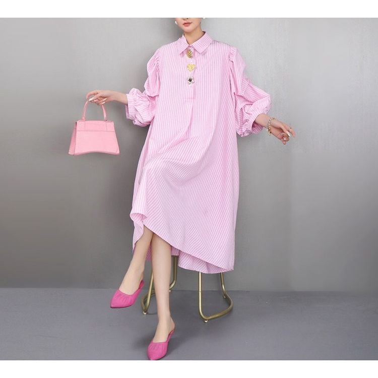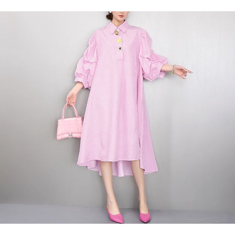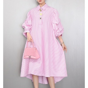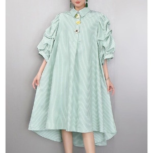 ストライプ ボリューム シャツワンピース 2color 26061
