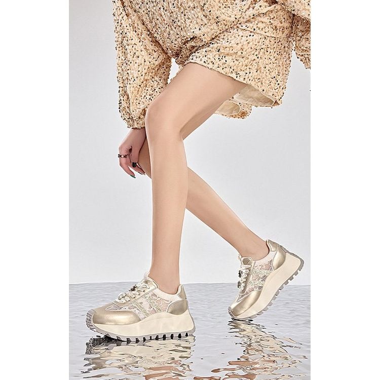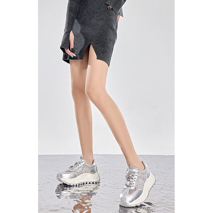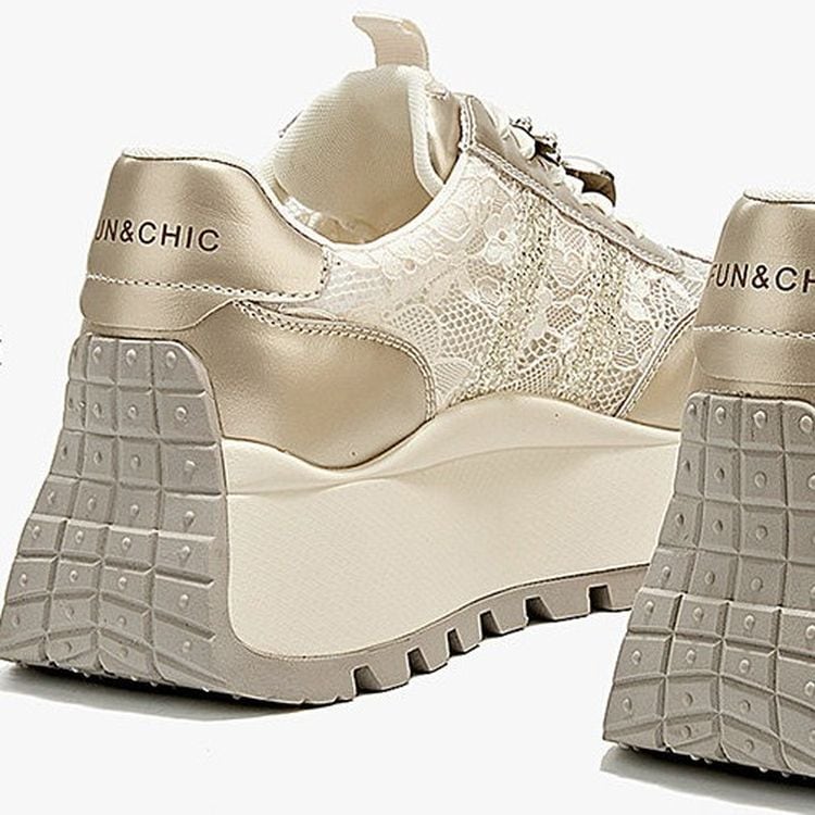 レースの透け感が上品なプラットフォームレースアップスニーカー。