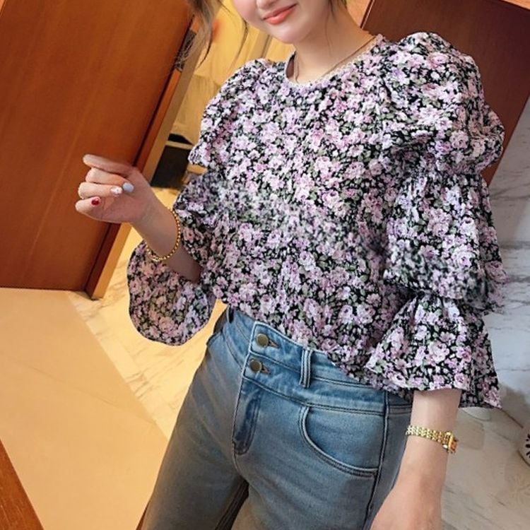 キャンディースリーブ 花柄 ブラウス 2color 26088
