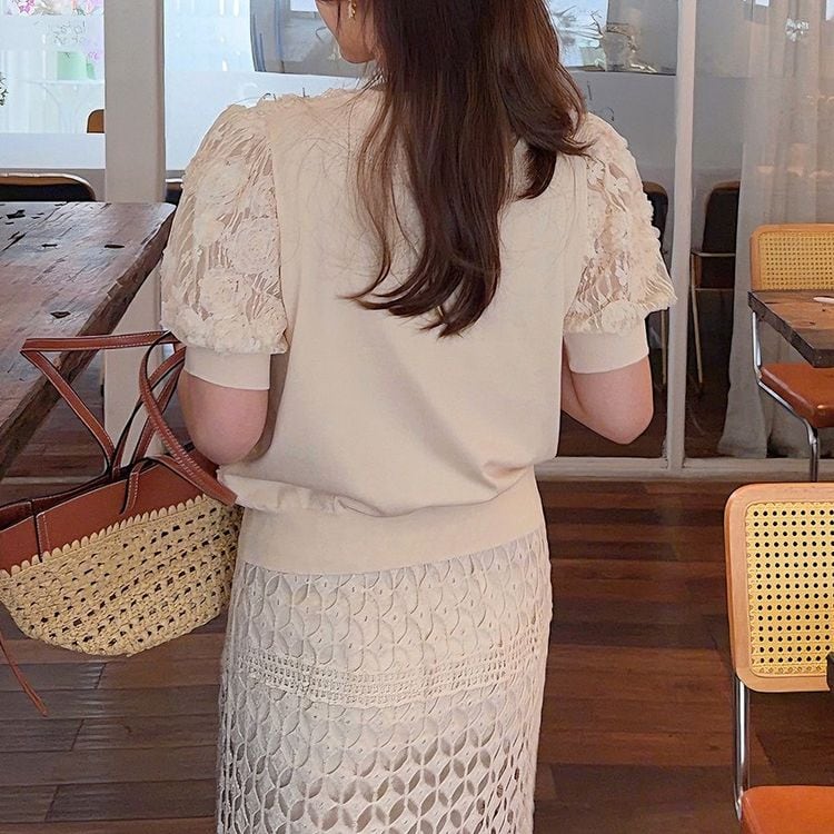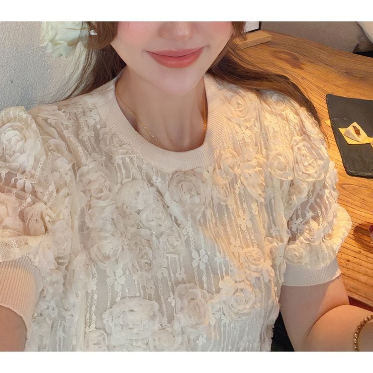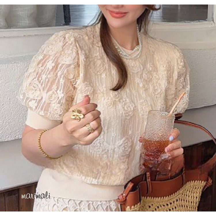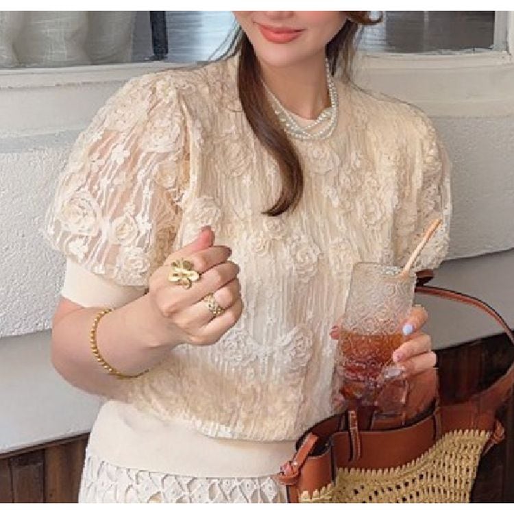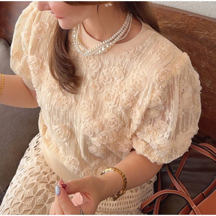 フラワーレース パフスリーブ トップス 26095
