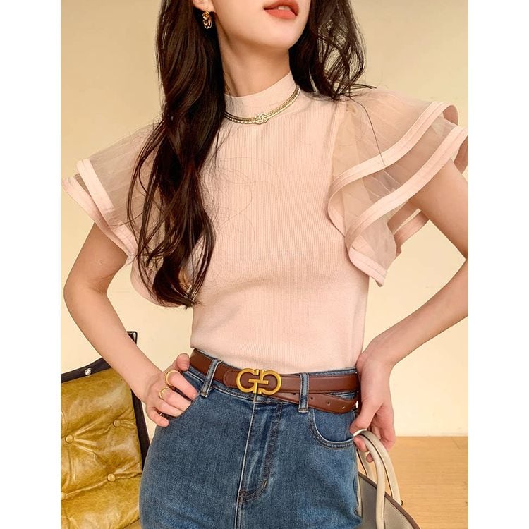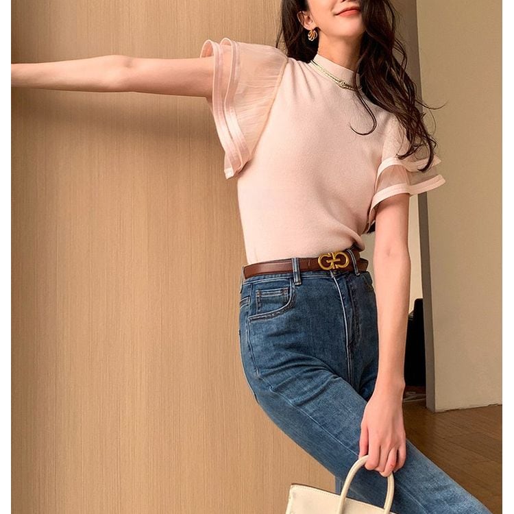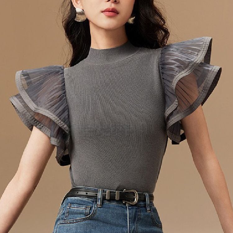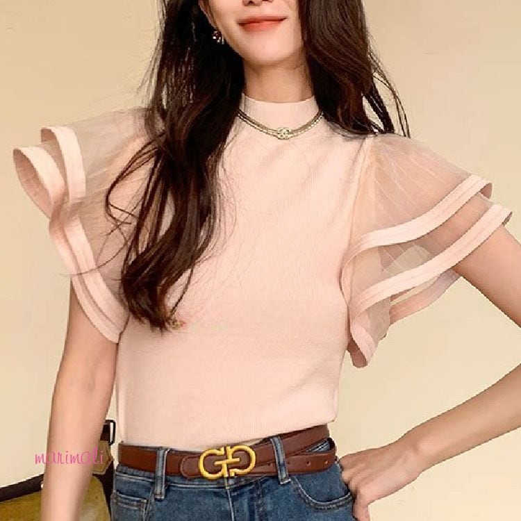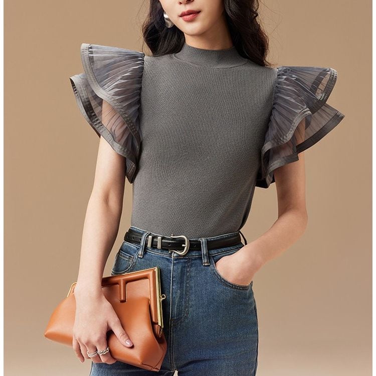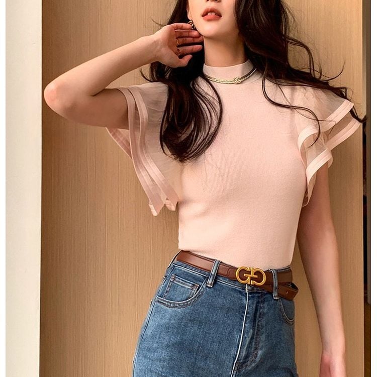 シアー フレアスリーブ ハイネック リブニット 2color 26107
