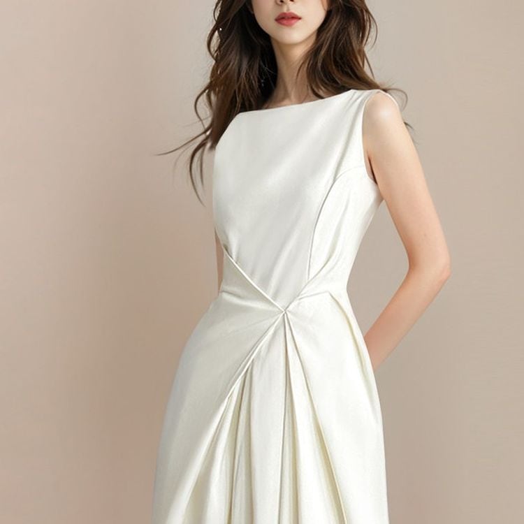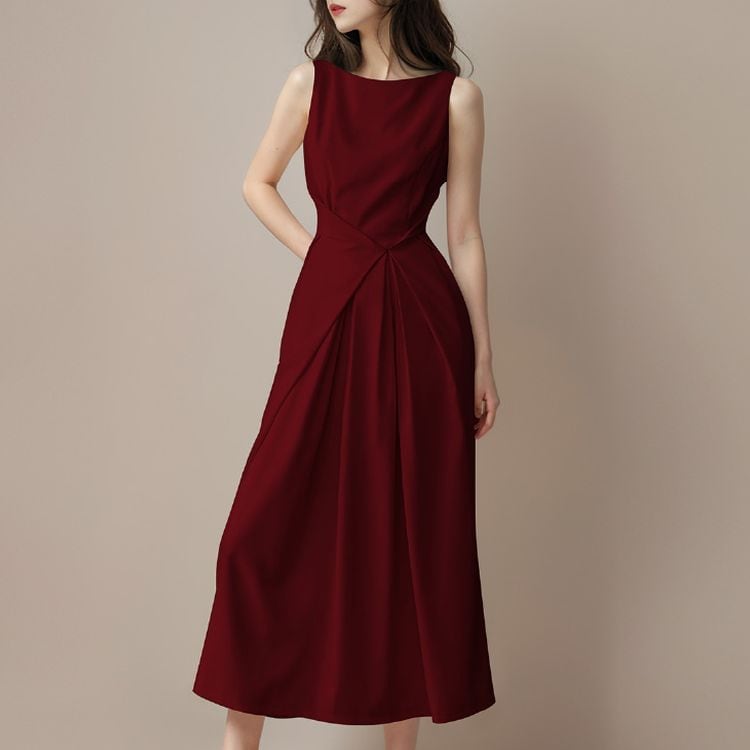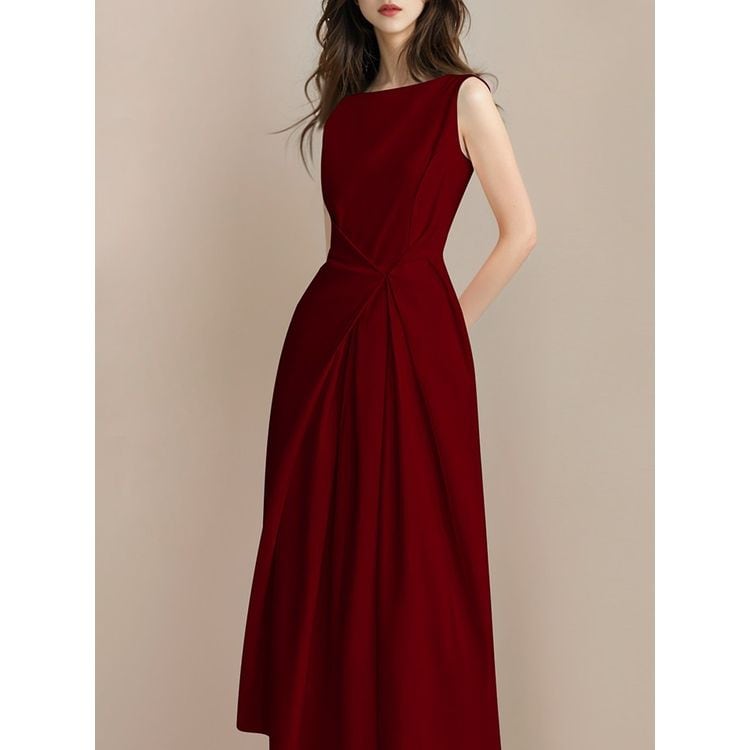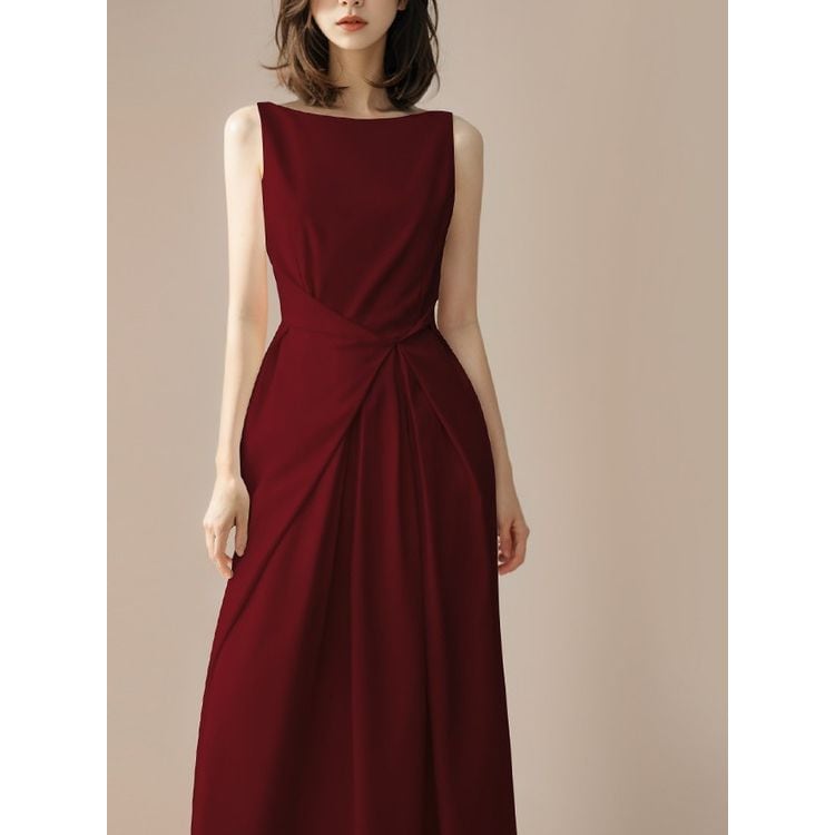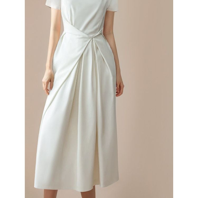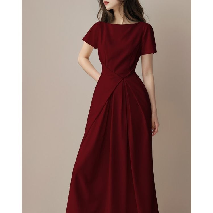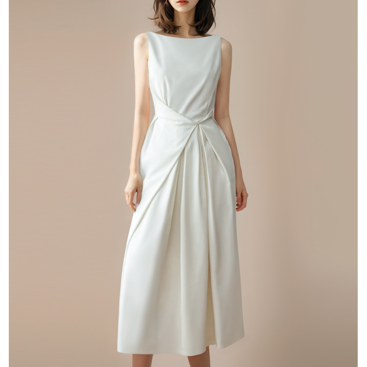 ボートネック ウエストドレープ ワンピース 2color 2style 26111