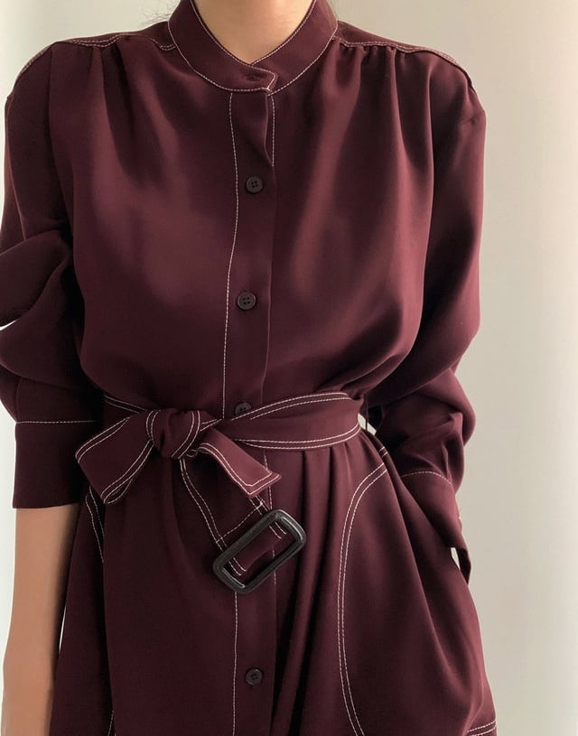 大人っぽい色味にステッチラインが映えるシャツワンピース。