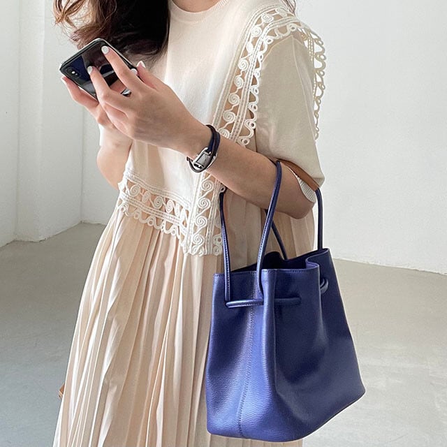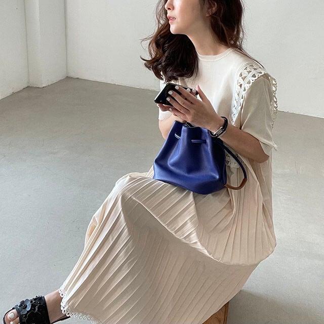 スクエアのビッグカラーとプリーツデザインの揺れ感が
