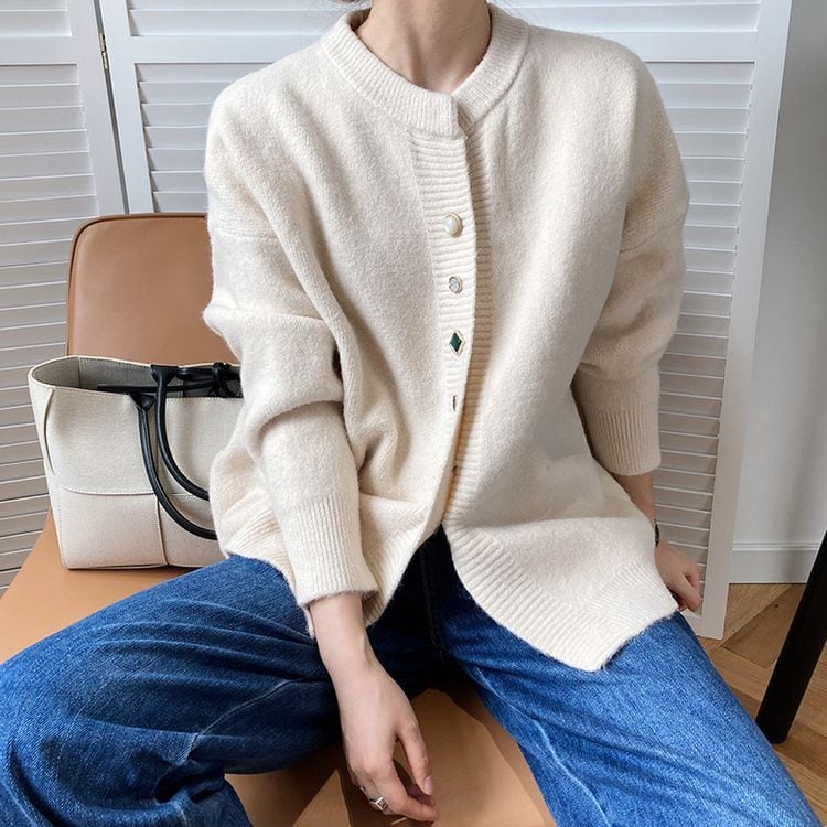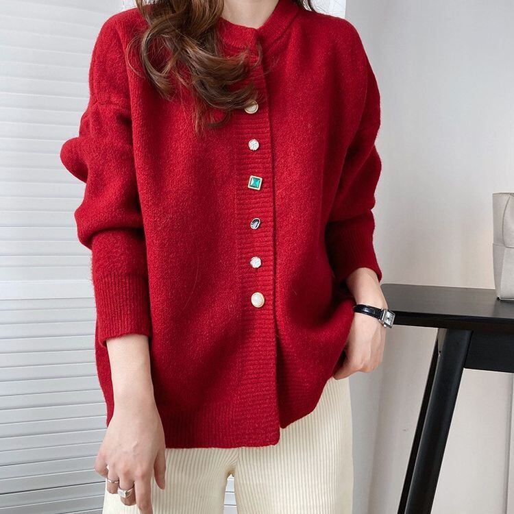 4color ビジューボタン ルーズ ニット カーディガン 22056