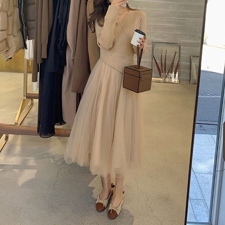 #チュールドッキング #ニットワンピース #ファッション #スタイル #コーディネート #おしゃれ #トレンド #秋冬ファッション #カジュアルスタイル #女性ファッション